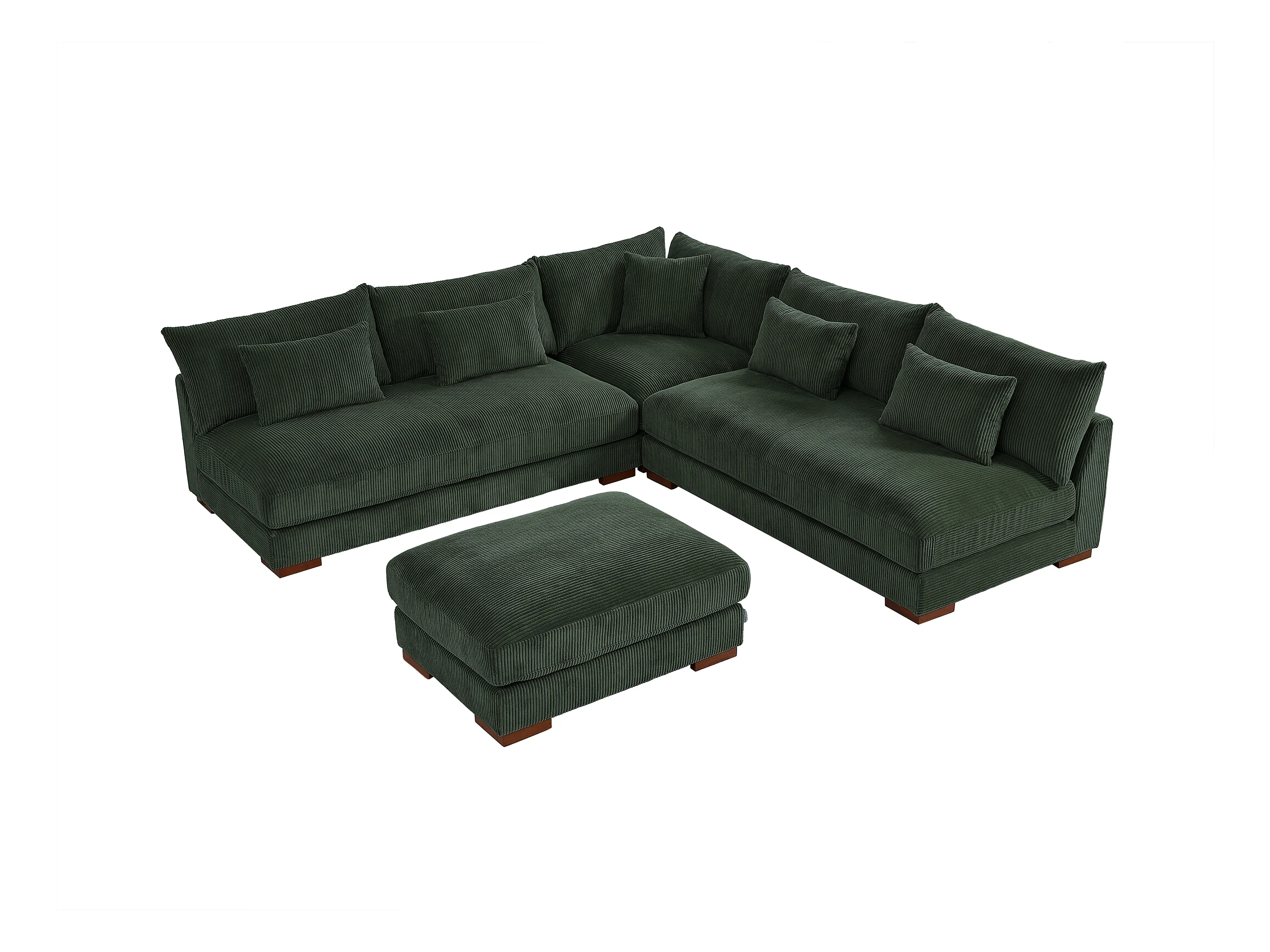 Sofá de canto reversível e pufe em veludo canelado verde - SPERONE de Pascal Morabito