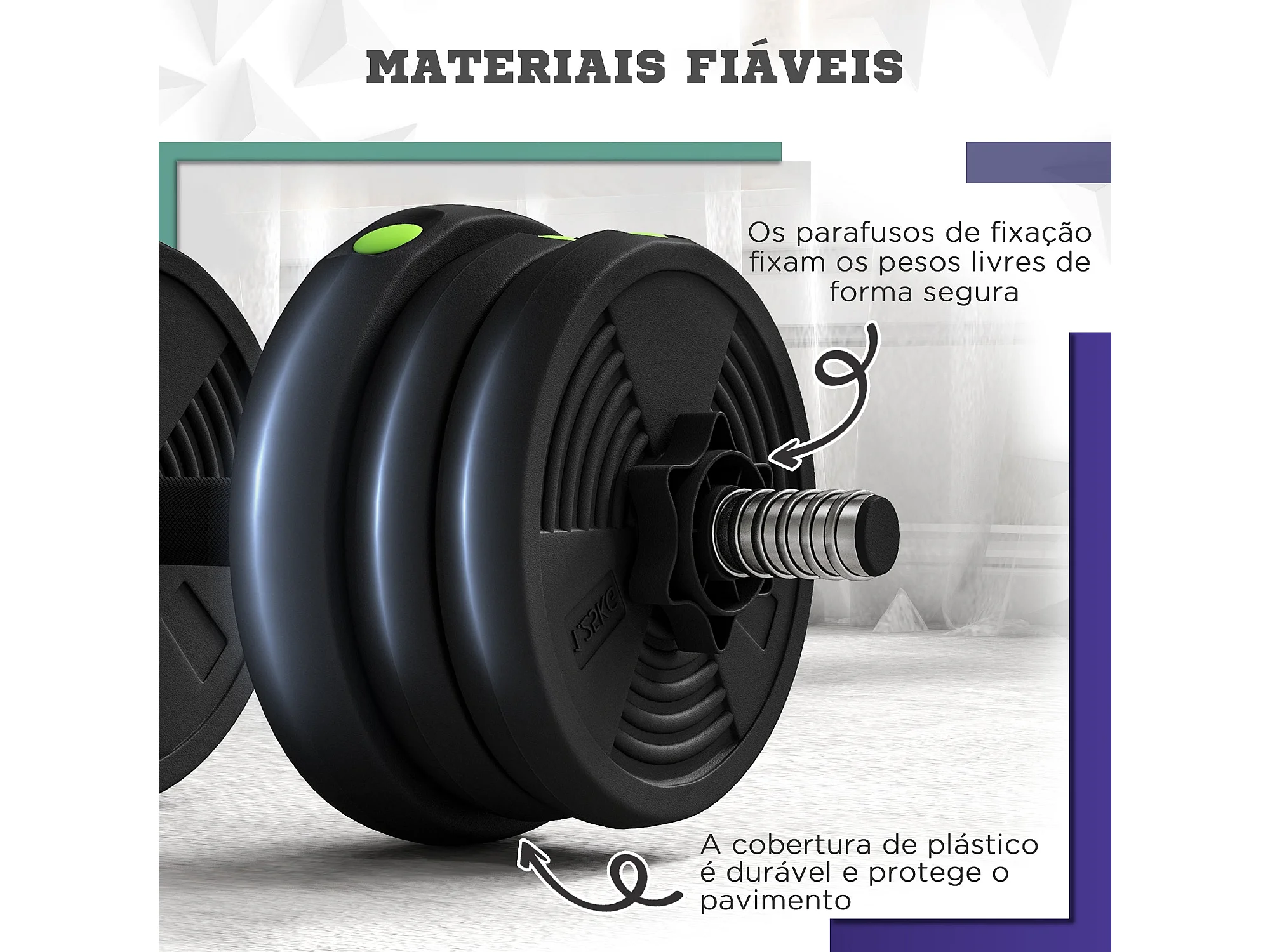 SPORTNOW Kit de Halteres 20kg 2 em 1 com Barra Antiderrapante para Treino em Casa e Escritório