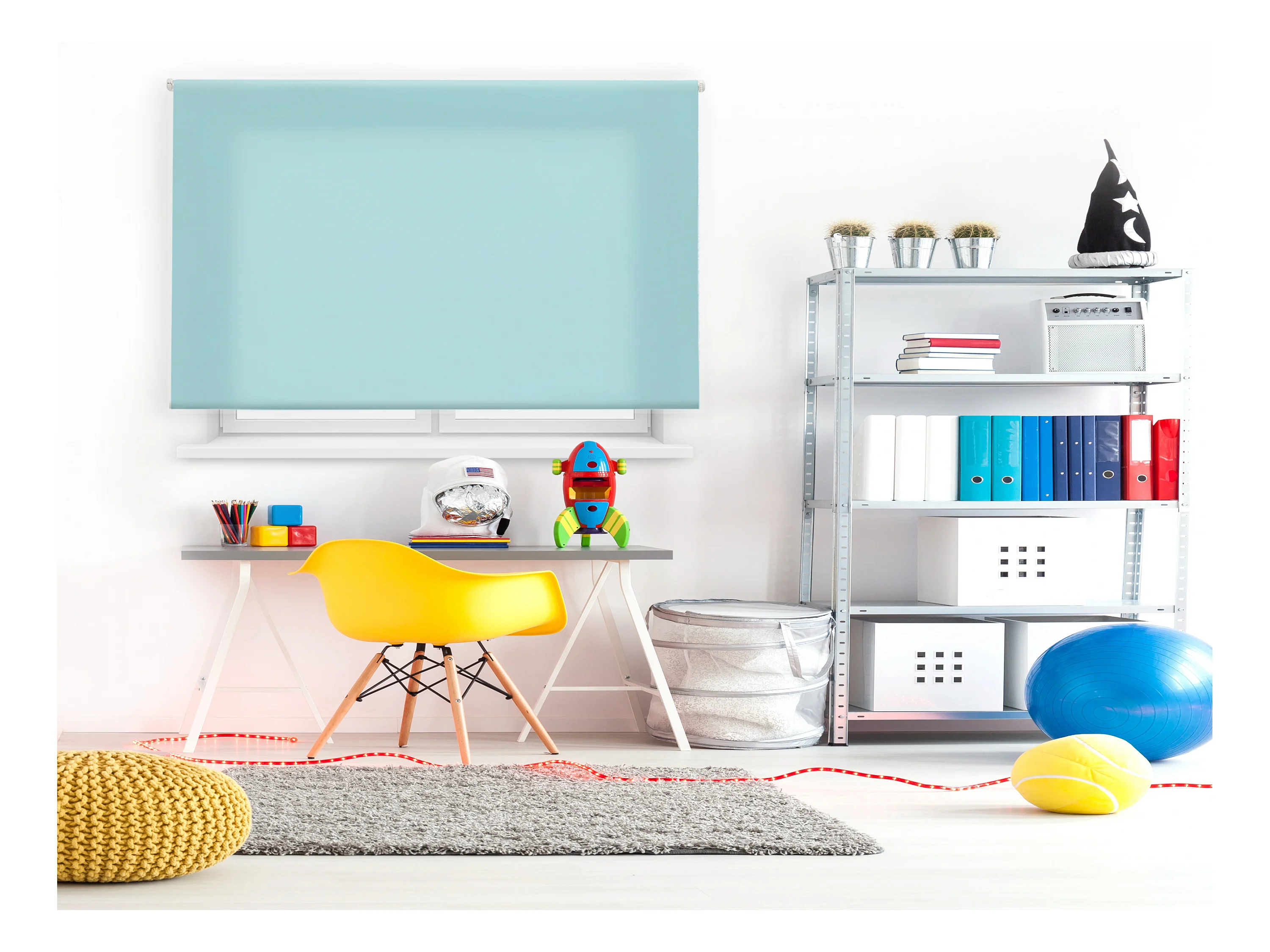 Cortina de rolo translúcido com trama simples e corrente manual