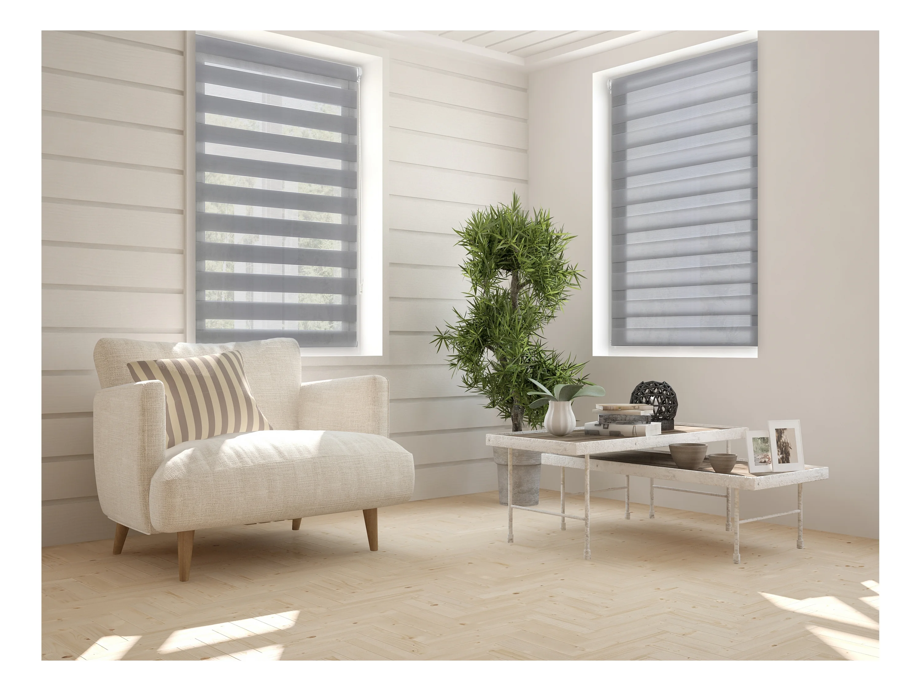Cortina de rolo noite e dia bicolor com tricô duplo e corrente manual