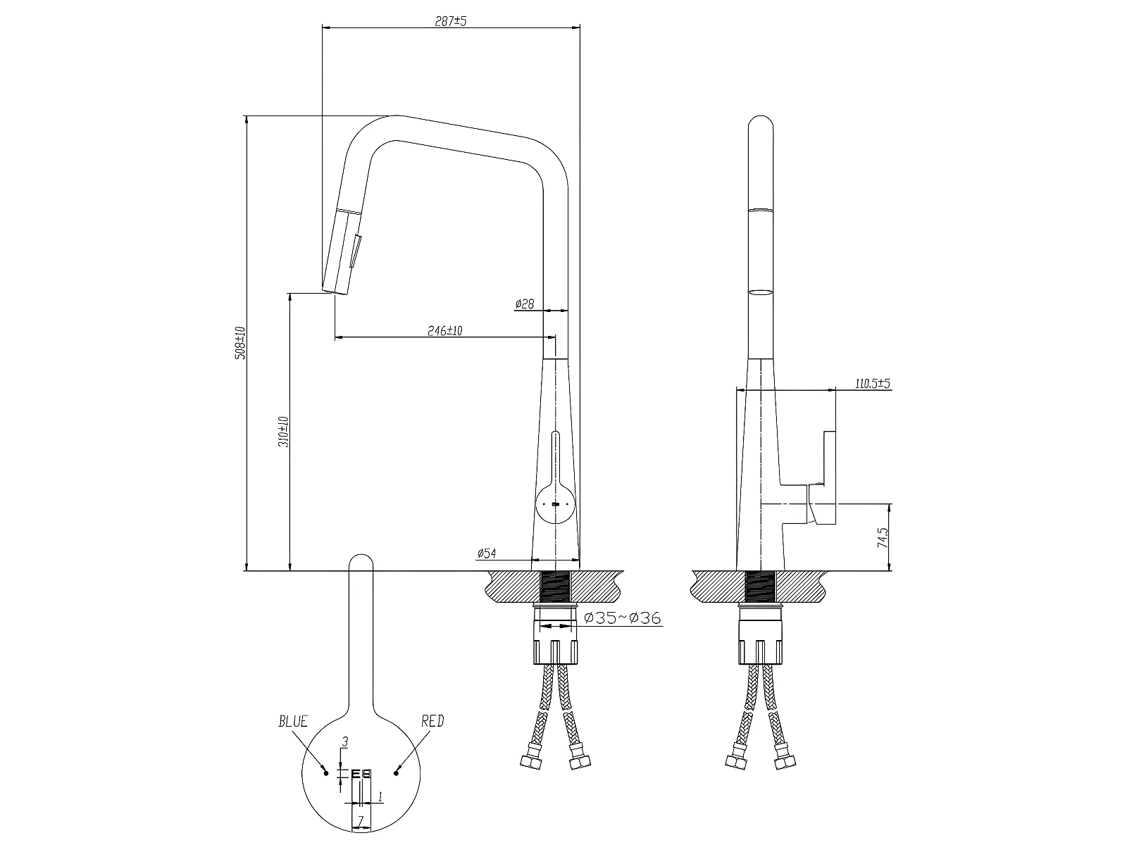 Architek Misturadora de lavatório com chuveiro extraível preto Essebagno