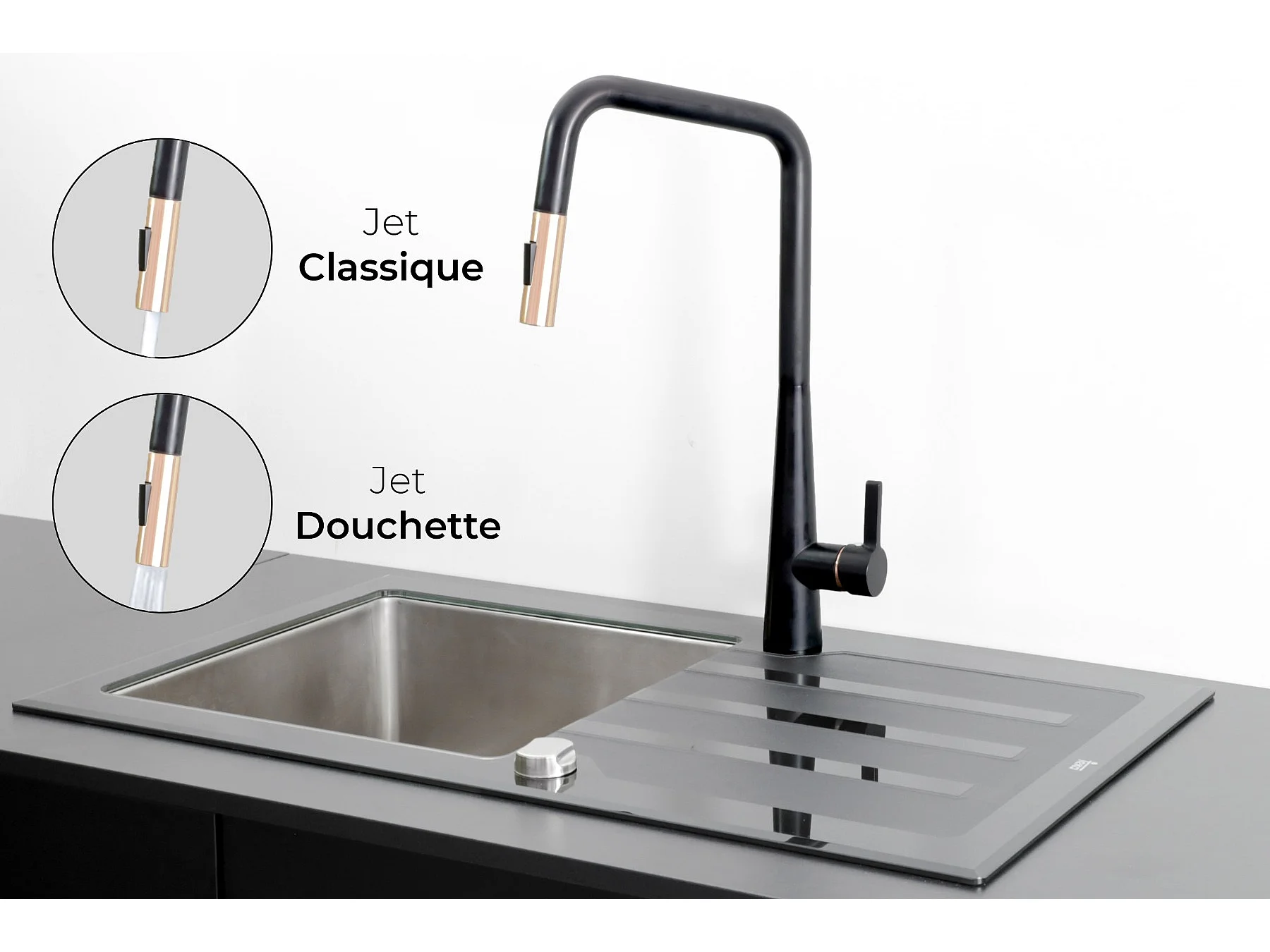 Lisse lava-loiça reversível 1 cuba grande 1 escorredor em resina preta Essebagno