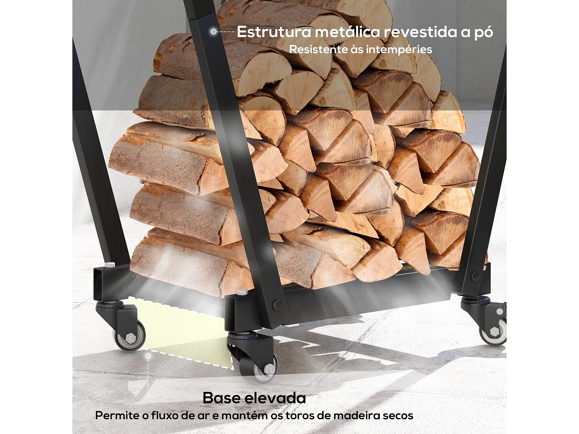 Suporte de Metal para Lenha com Rodas - Design Moderno e Prático para Armazenamento de Lenha