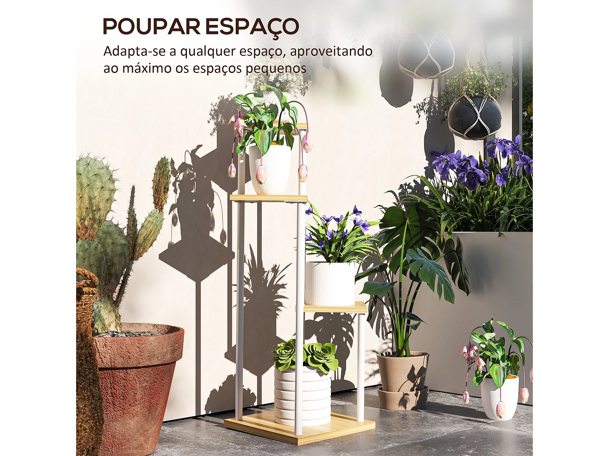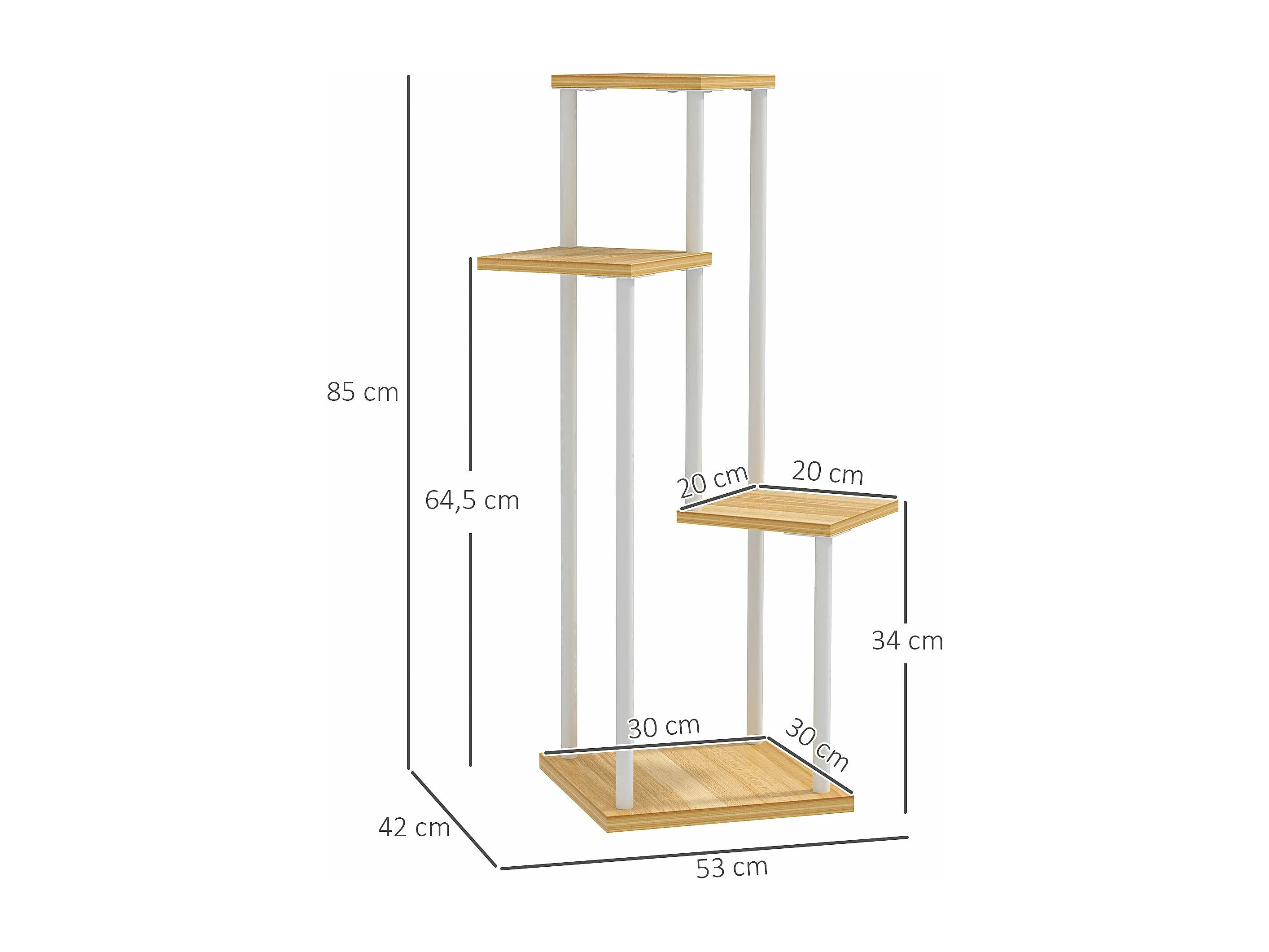 Suporte de Plantas de 4 Níveis em Madeira e Aço - Decoração Elegante para Interior e Exterior 53x42x85 cm