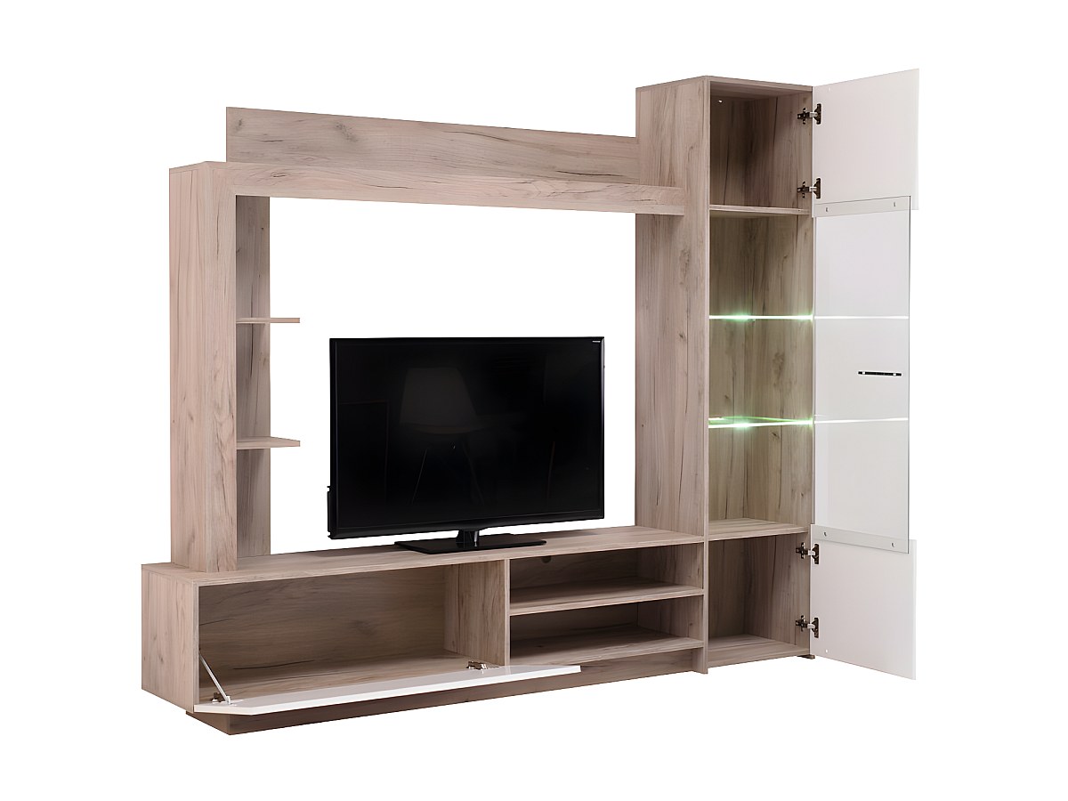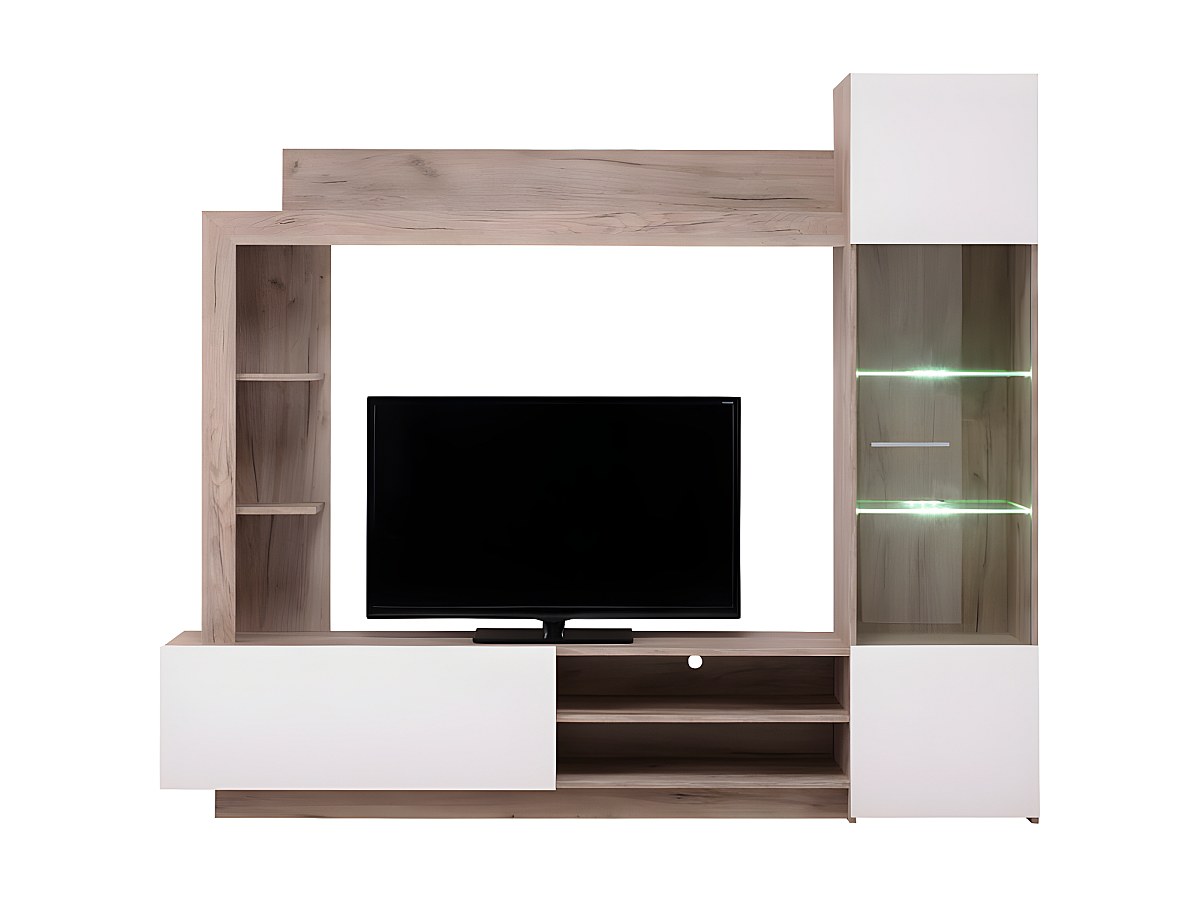 Suporte de TV ARKALA com arrumação - LEDs - Branco e Carvalho