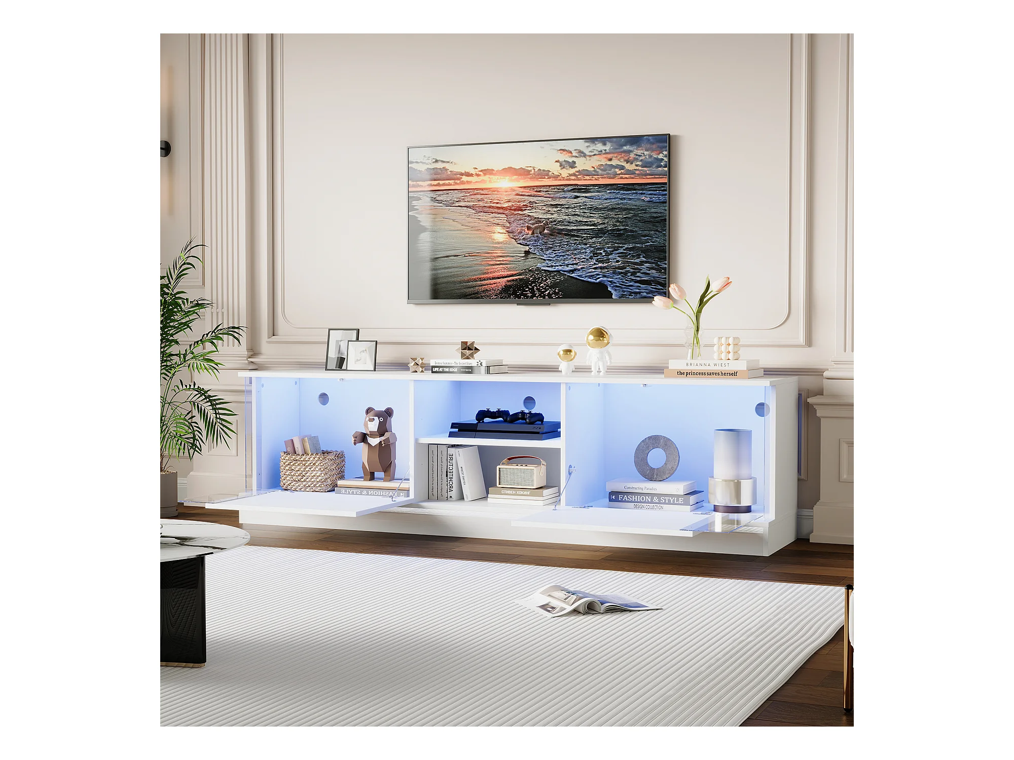 Suporte de TV moderno e brilhante de 178 cm com iluminação LED, armário de TV com espaço de armazenamento, branco