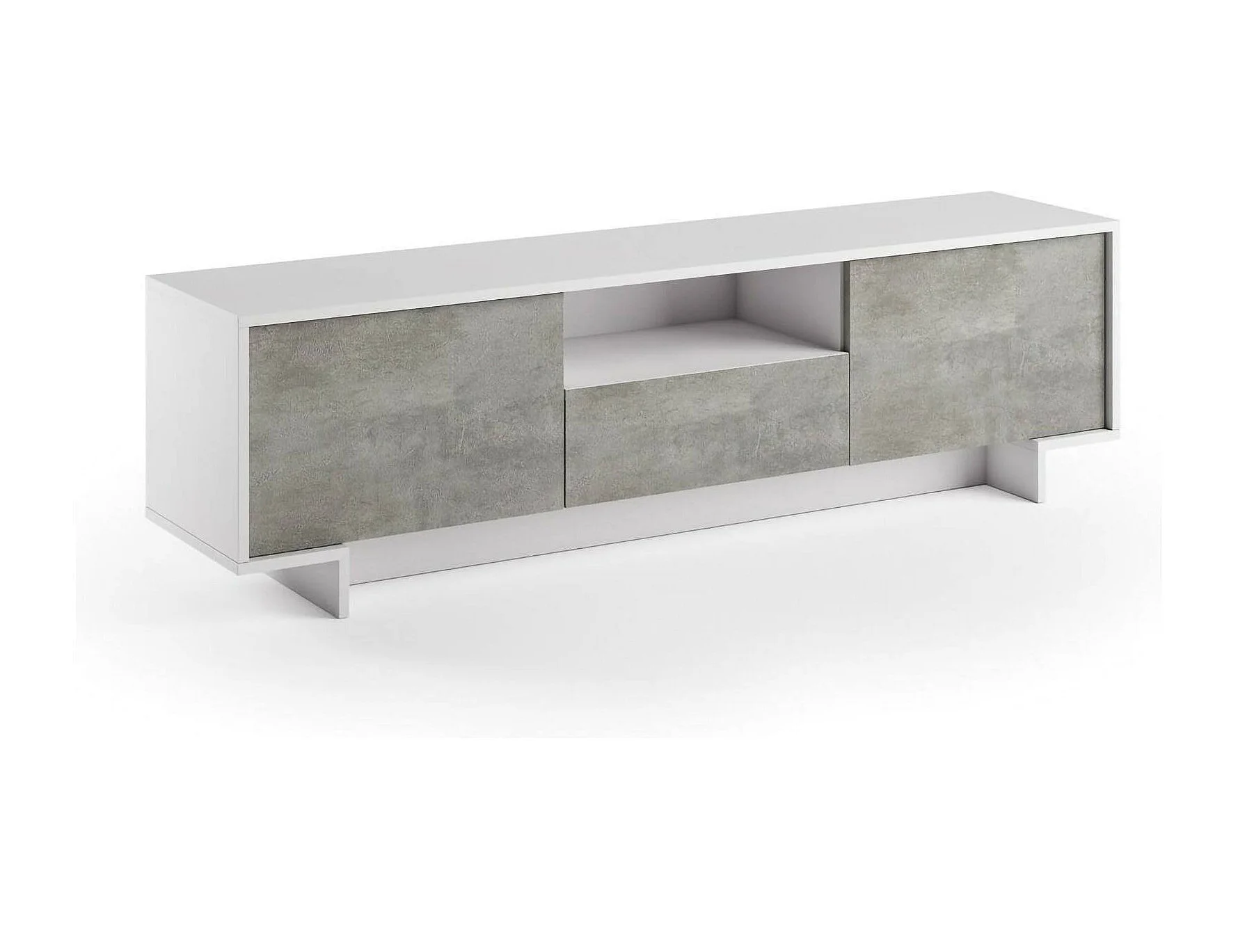 Suporte de TV Darrighin, Suporte para TV de ala de etar, Aparador baixo para ala de etar com 2 porta e 1 gaveta, 100% Made in Italy, 170x42h48 cm, Branco e Concreto