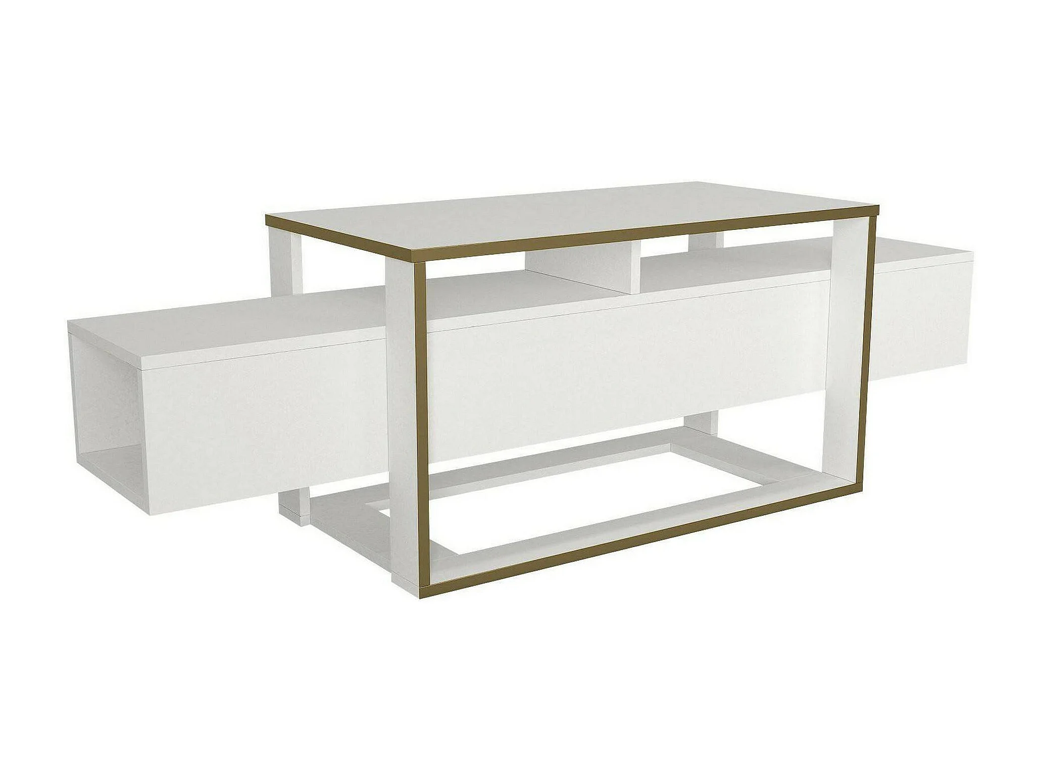 Suporte de TV Dgiacint, Aparador de sala, Armário de TV baixo, Base de parede equipada, 160x46h50 cm, Branco e Dourado