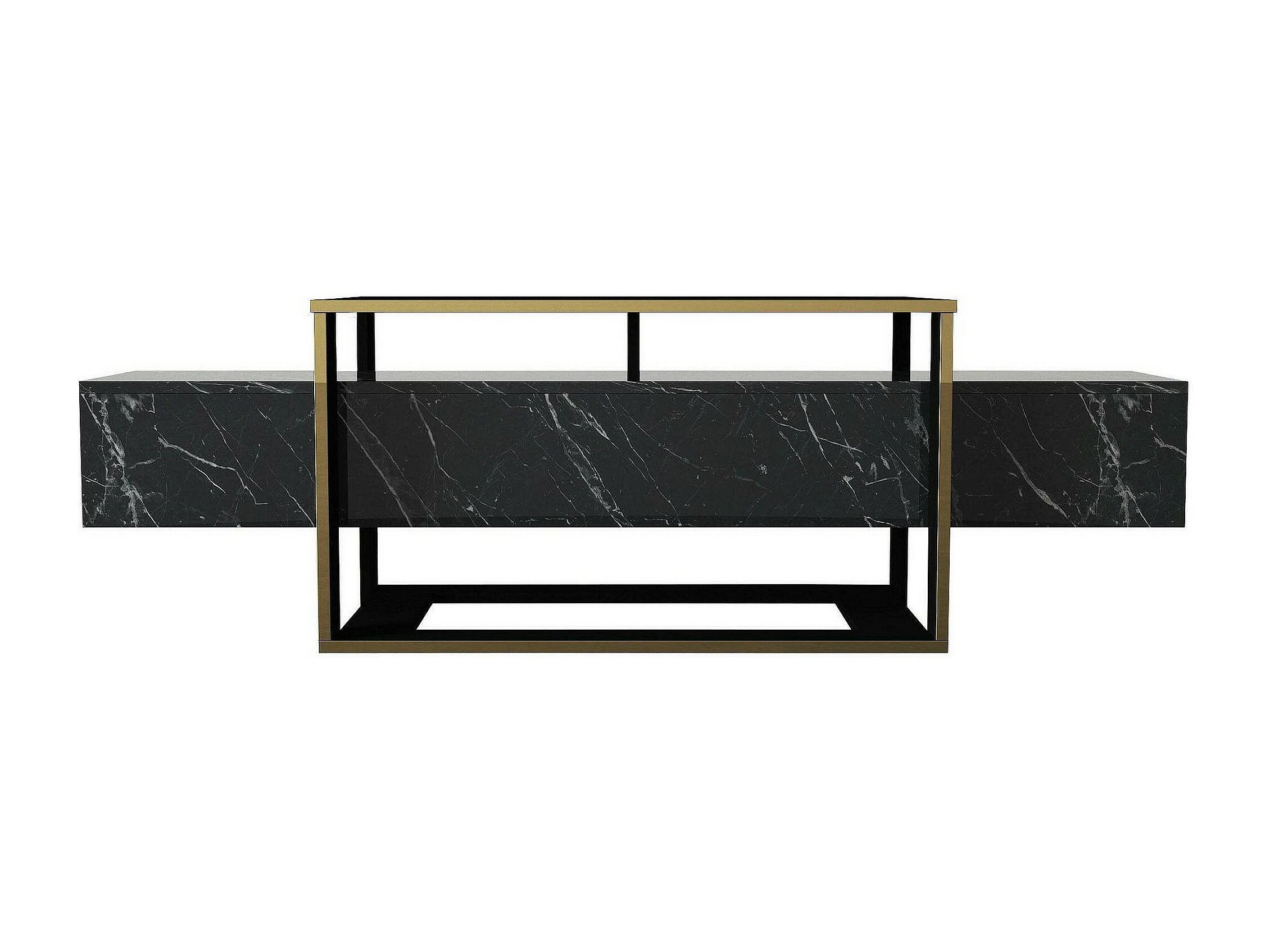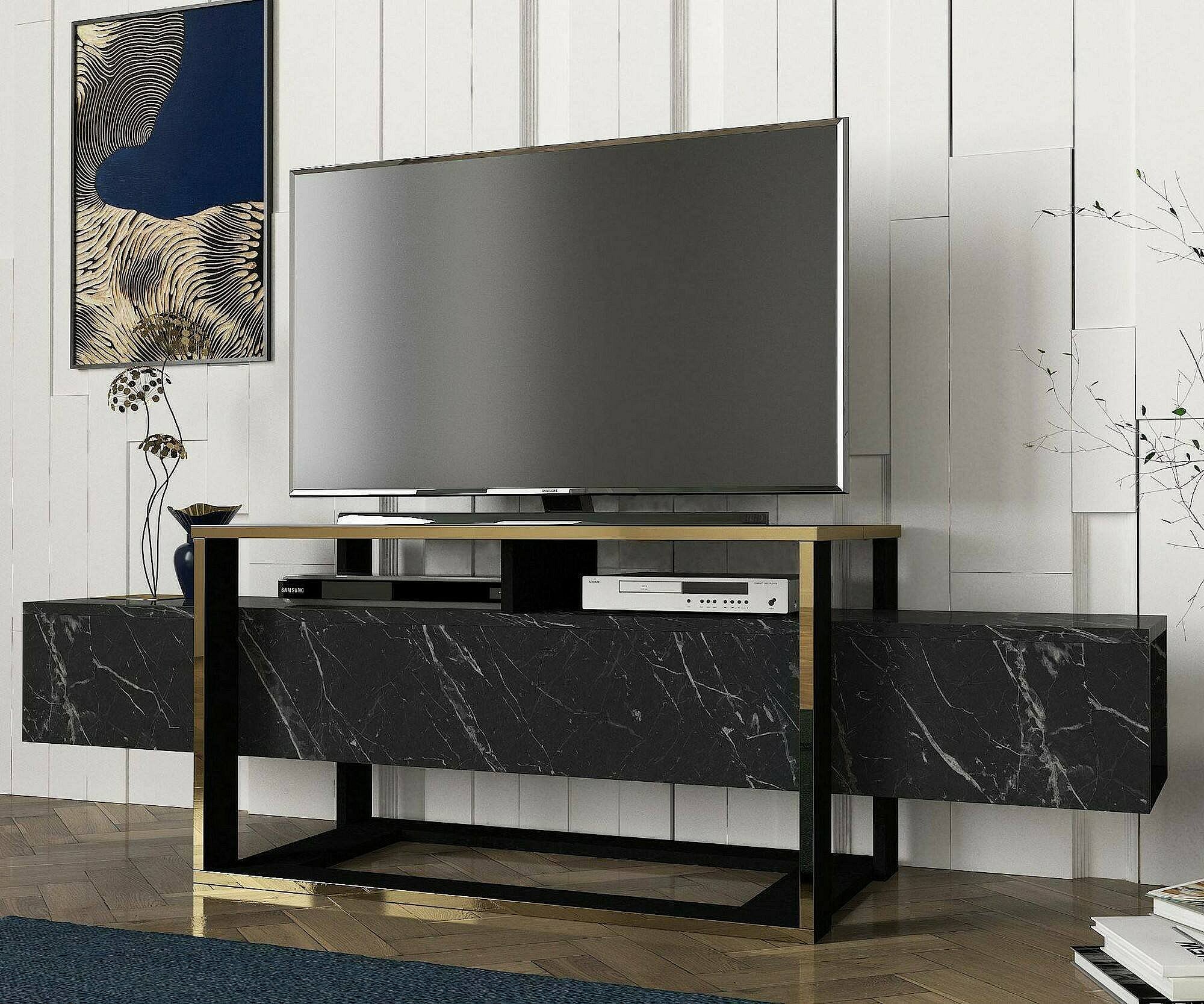 Armário de TV Dpascutt, Aparador de sala, Armário de TV baixo, Base de parede equipada, 180x32h45 cm, Preto e Dourado