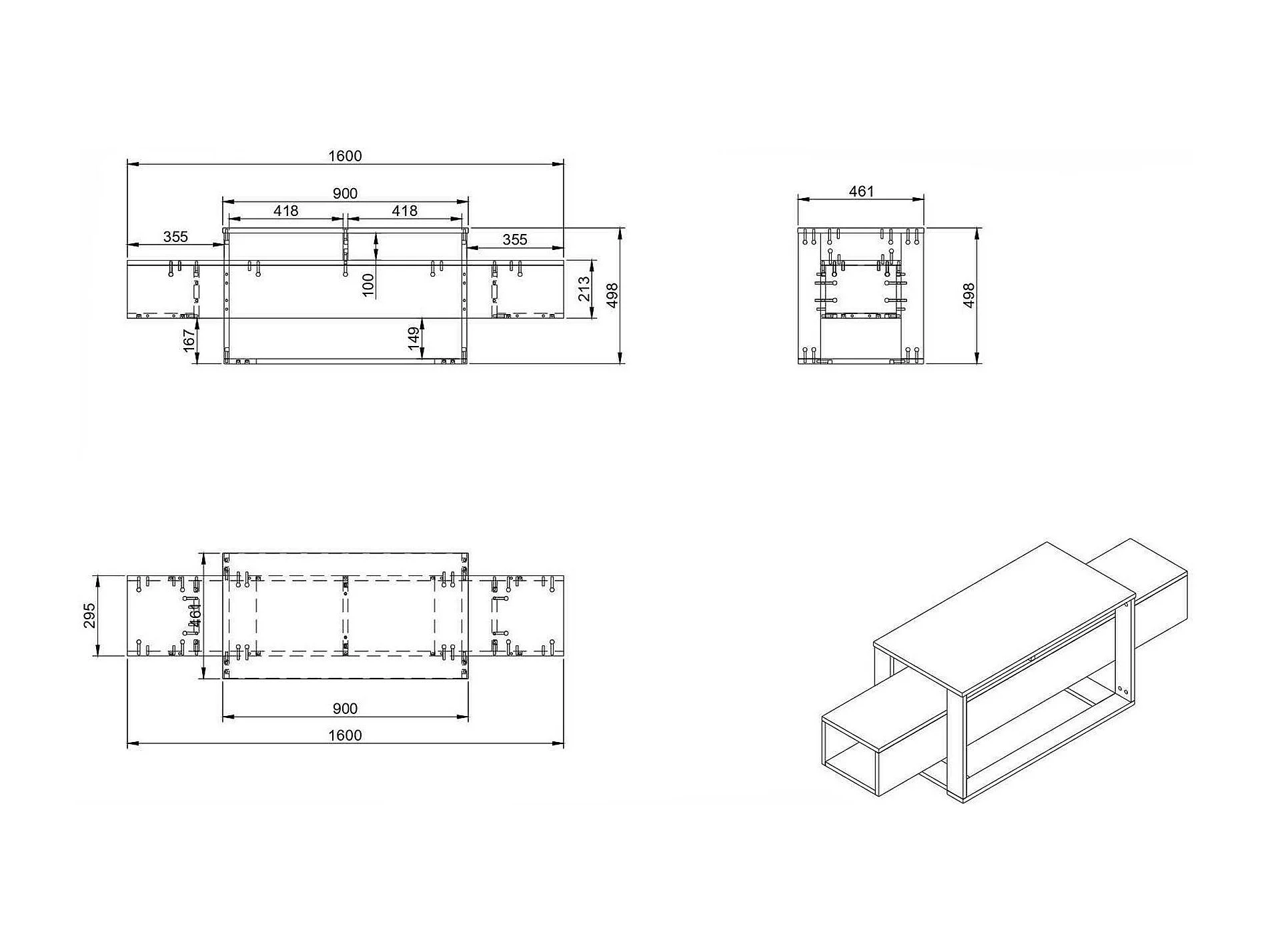 Armário de TV Dbara, Aparador de sala, Armário de TV baixo, Base de parede equipada, 158x30h40 cm, Antracite