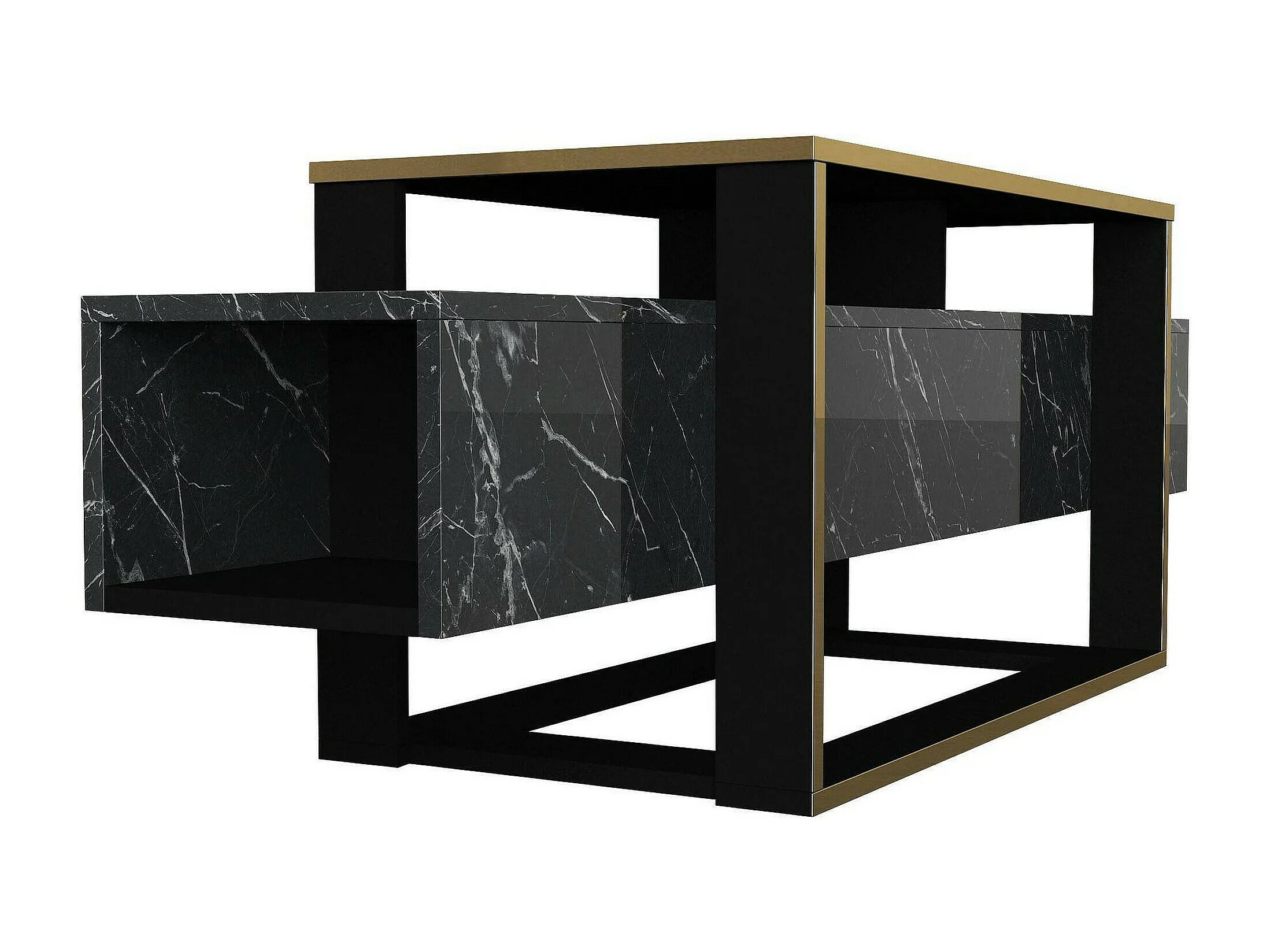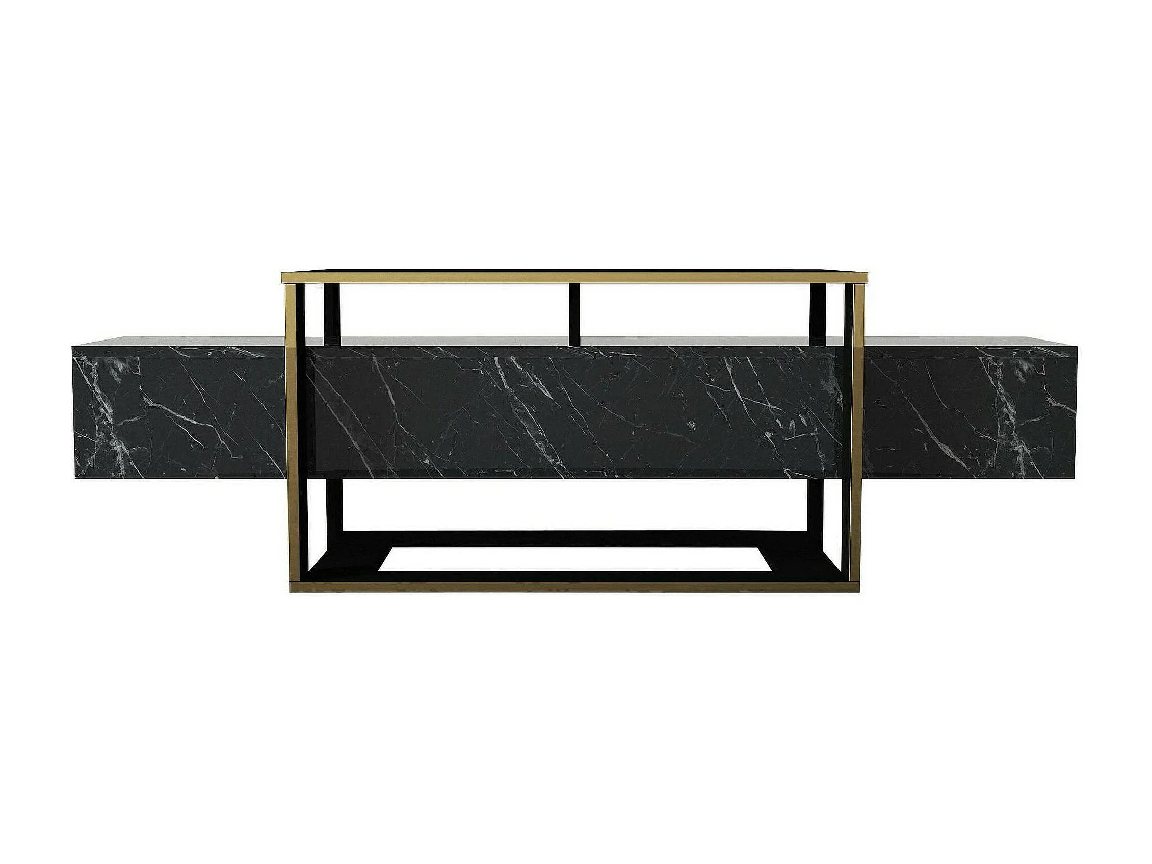 Suporte de TV Dgiacint, Aparador de sala, Armário de TV baixo, Base de parede equipada, 160x46h50 cm, Preto e Dourado