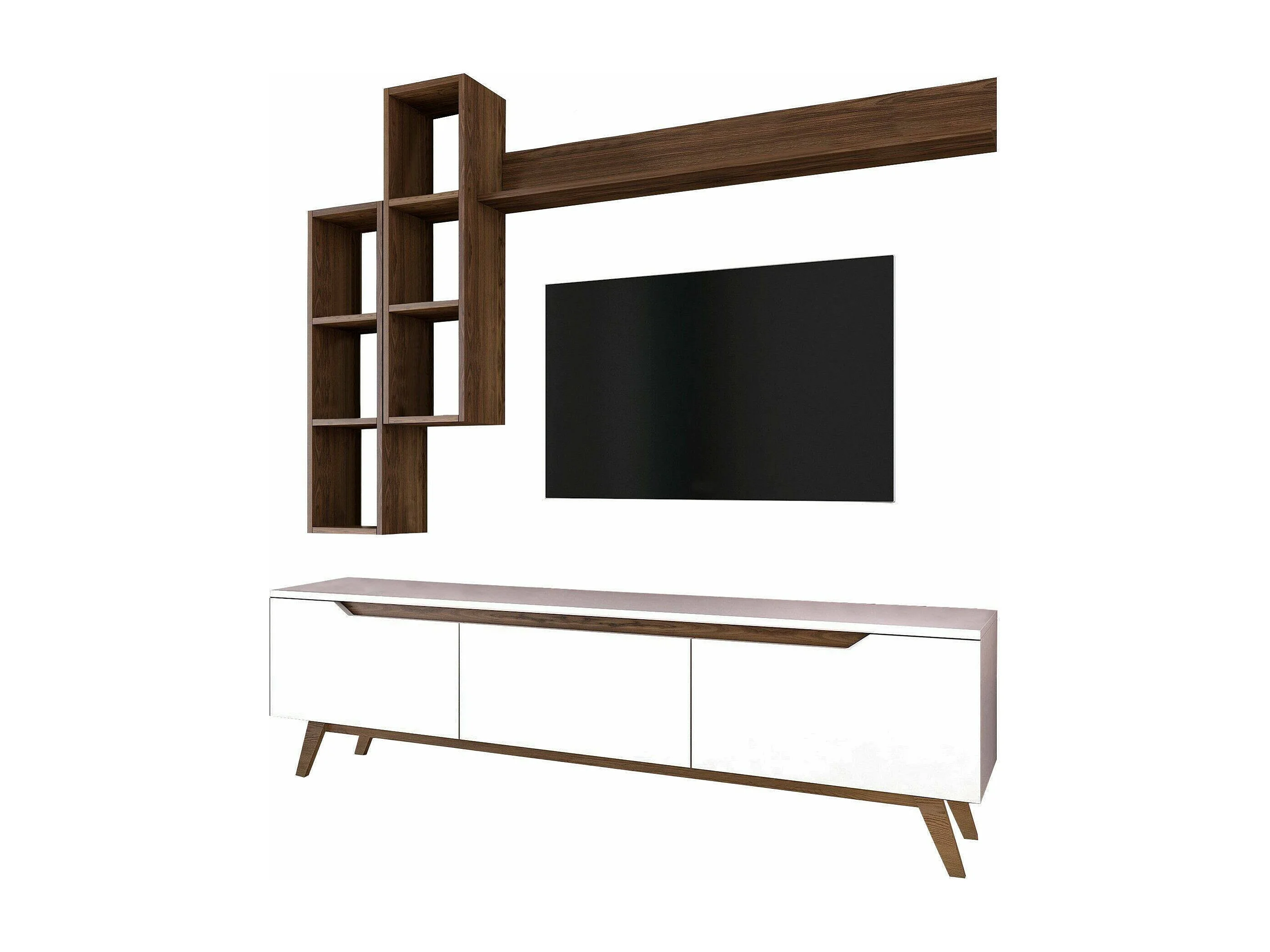 Suporte de TV Dleonard, CreDenza de sala de estar, armário baixo para TV, base de parede equipada, 180x35h49 cm, branco e nogueira