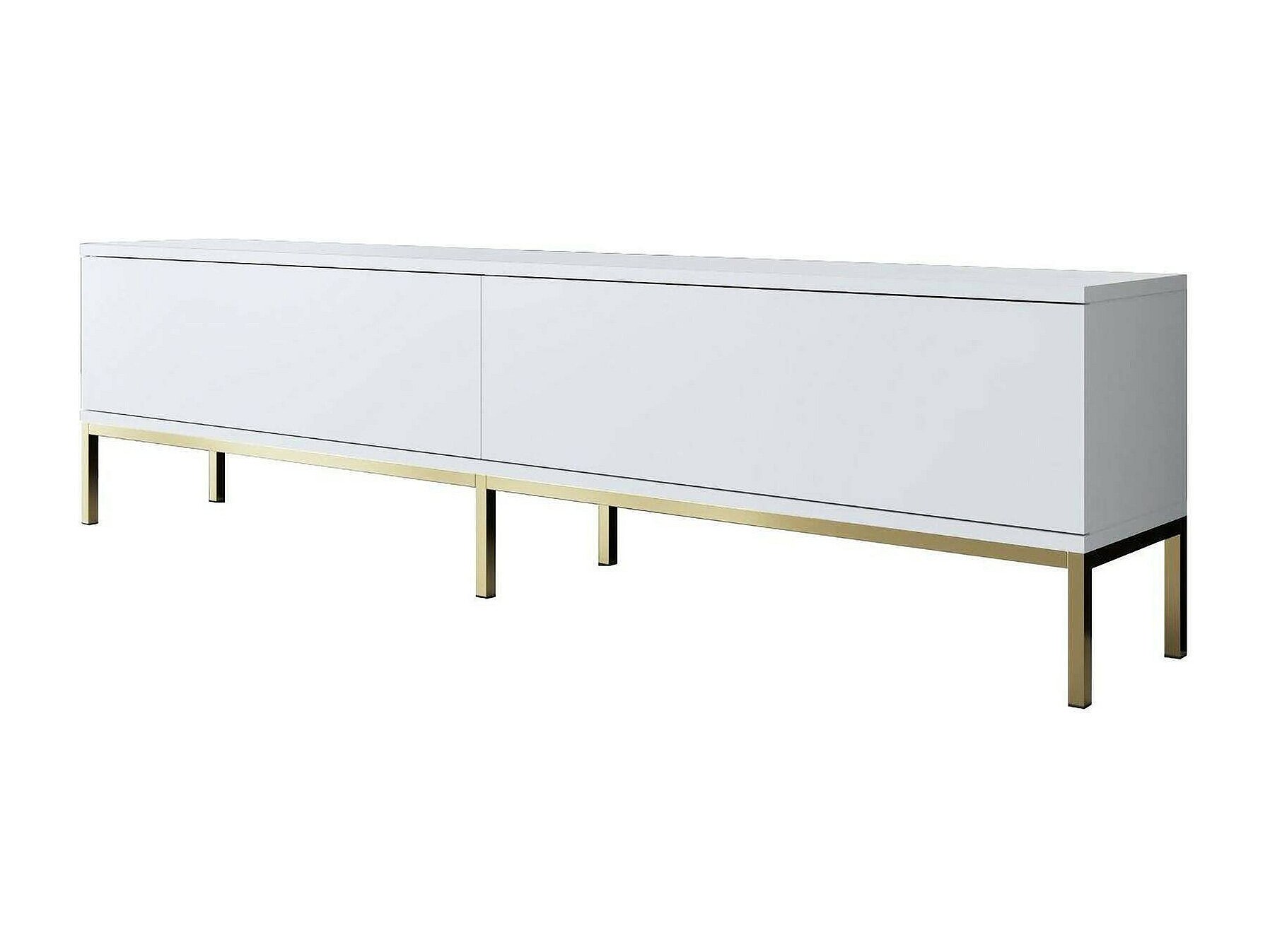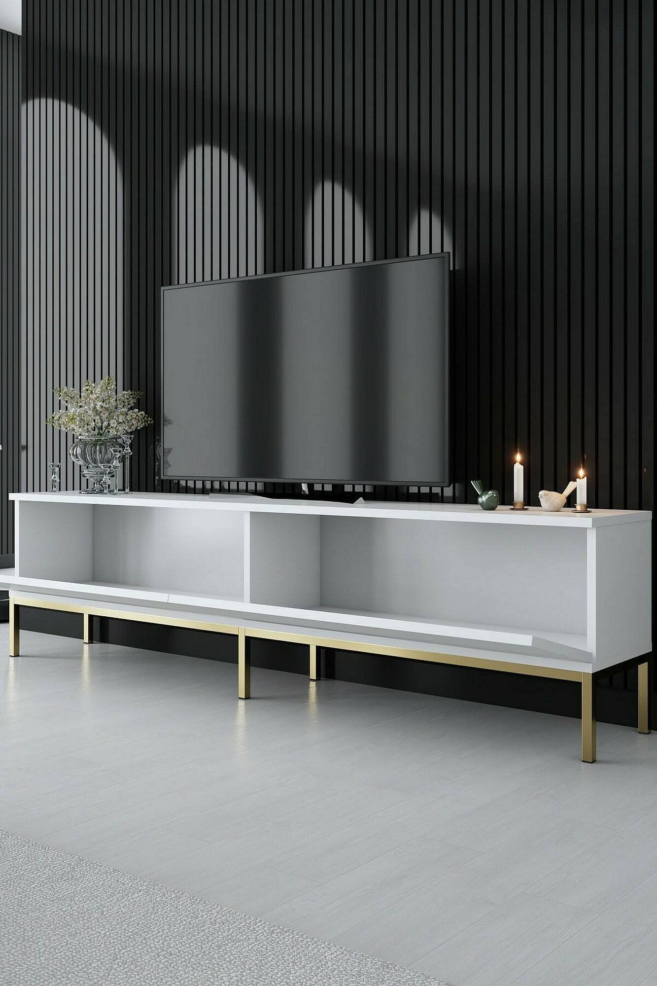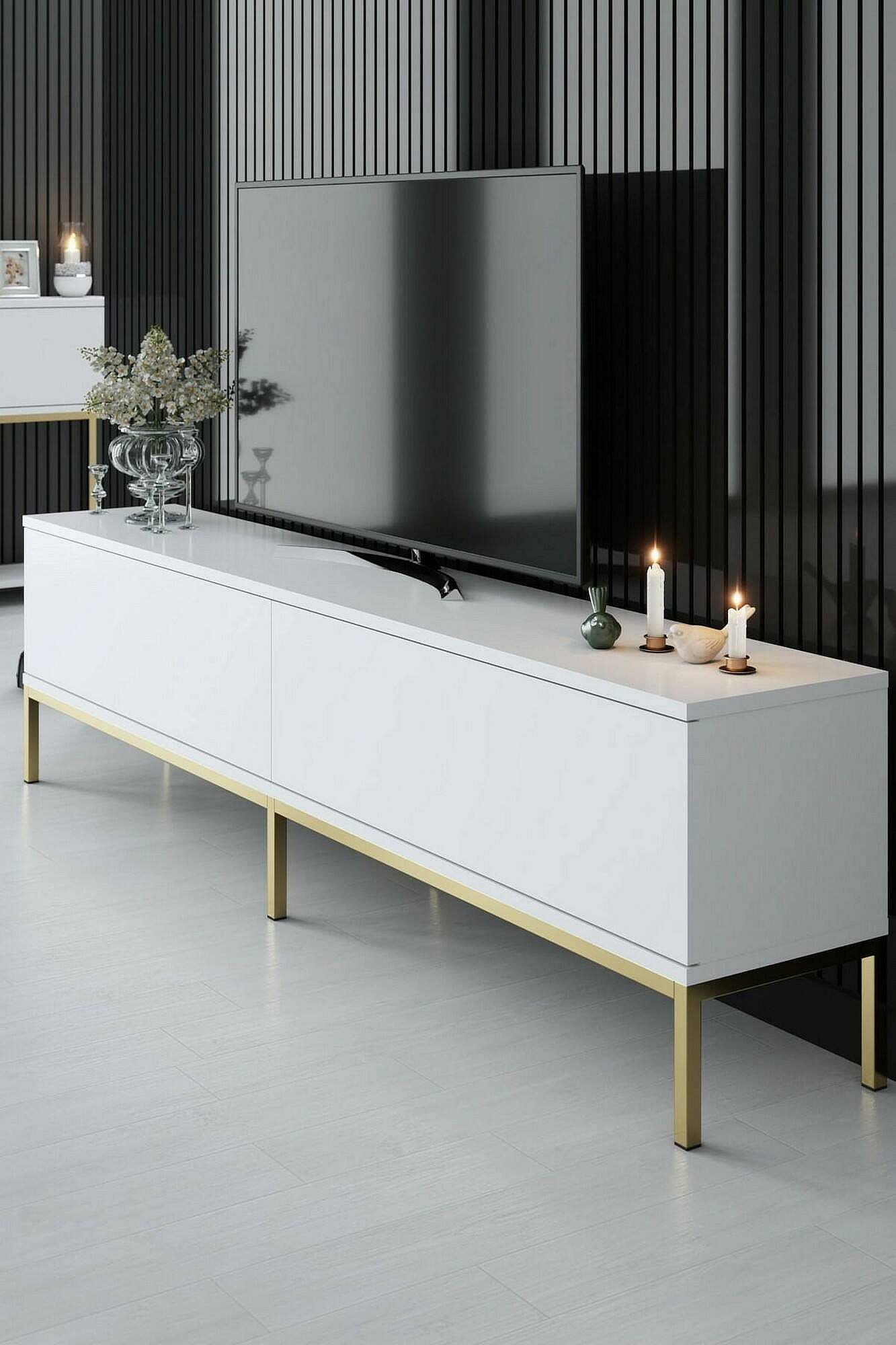 Suporte de TV Dpetrell, Aparador de sala, Armário de TV baixo, Base de parede equipada, 180x30h47 cm, Branco e Dourado