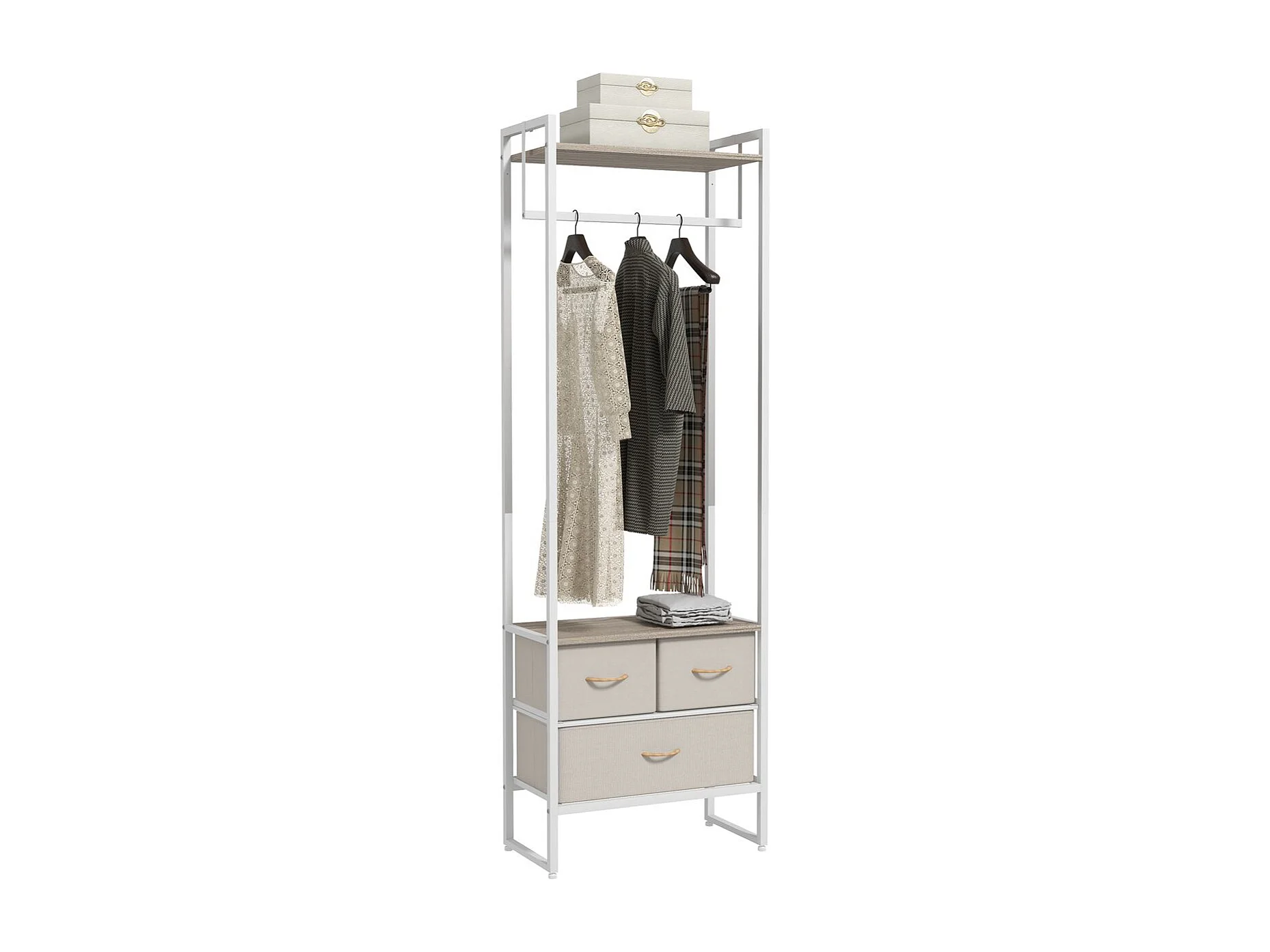 Suporte para Cabides com 3 Gavetas e Prateleira - Design Moderno para Entrada e Quarto 58,5x30x178 cm - Modelo Reykjavik