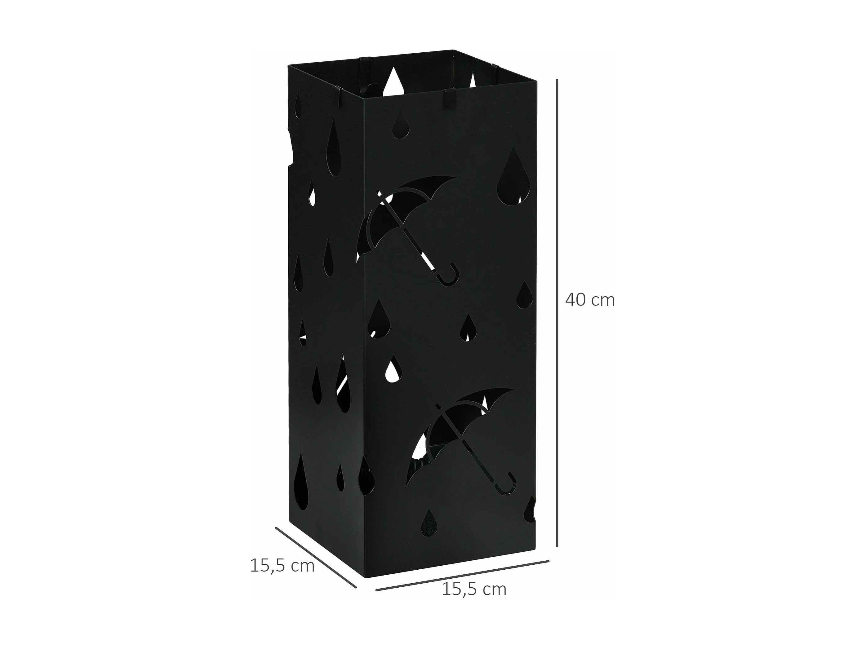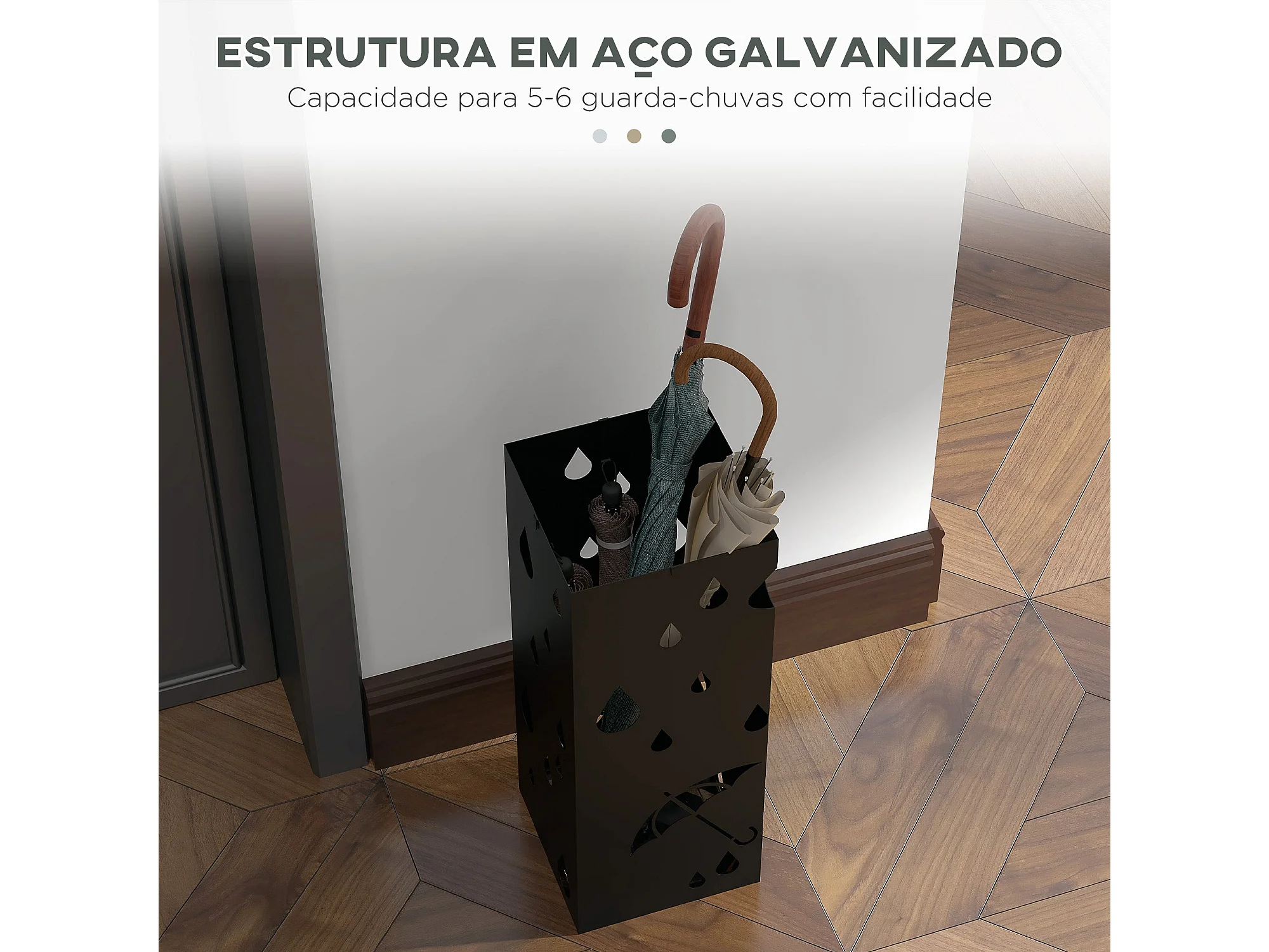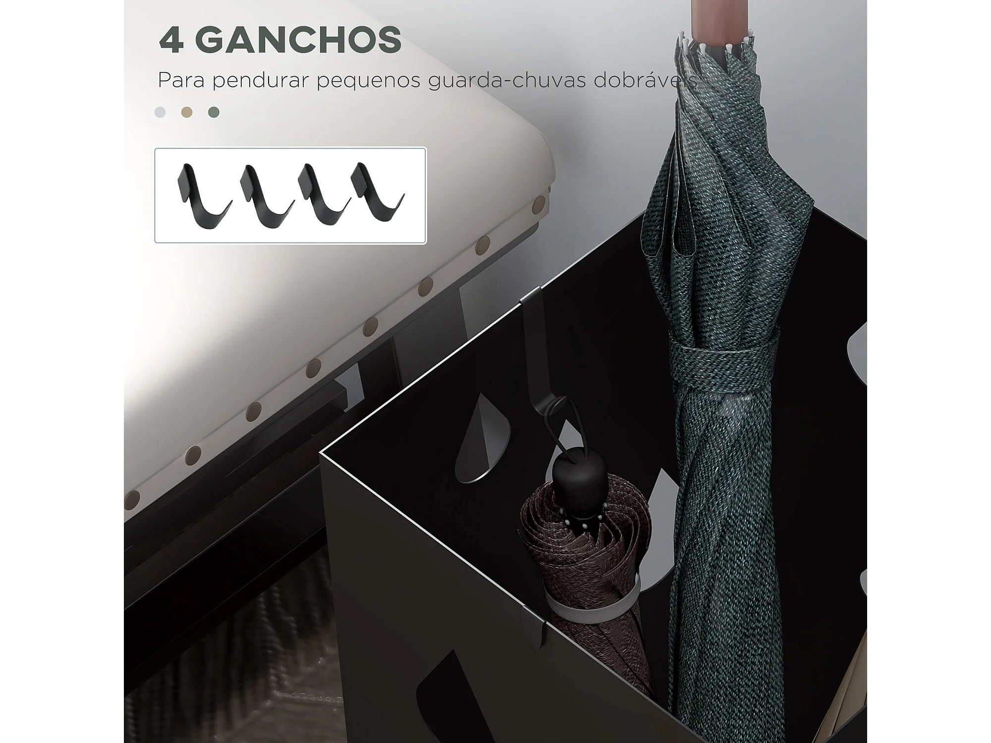 Suporte para Guarda-Chuvas Branco com 4 Ganchos e Bandeja de Gotejamento para Entrada 15,5x15,5x41 cm