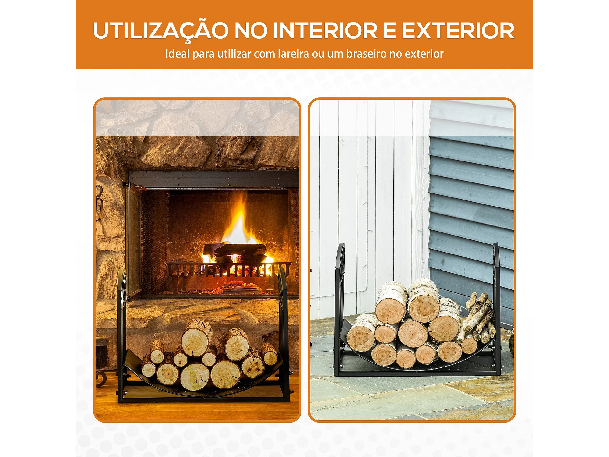Suporte para Lenha em Metal com Design Curvo – Capacidade para 60 kg e Dimensões 60,5x36x46,5 cm