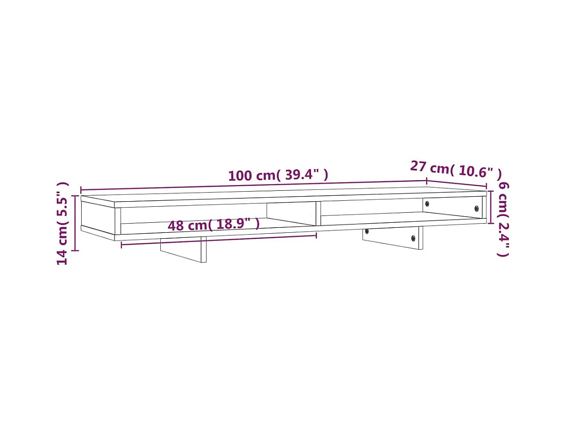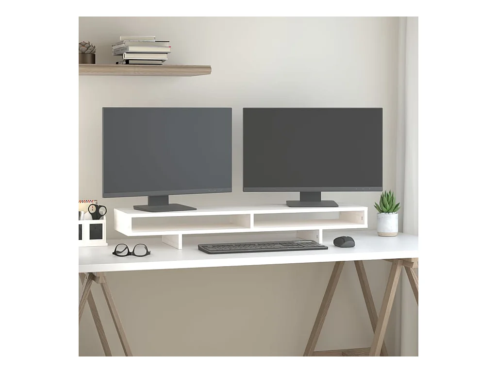Suporte para monitor Branco 100x27x15 cm Madeira maciça de pinho