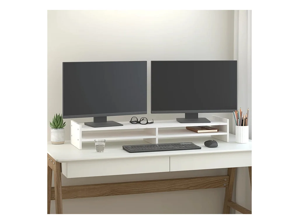 Suporte para monitor Branco 100x27x15 cm Madeira maciça de pinho