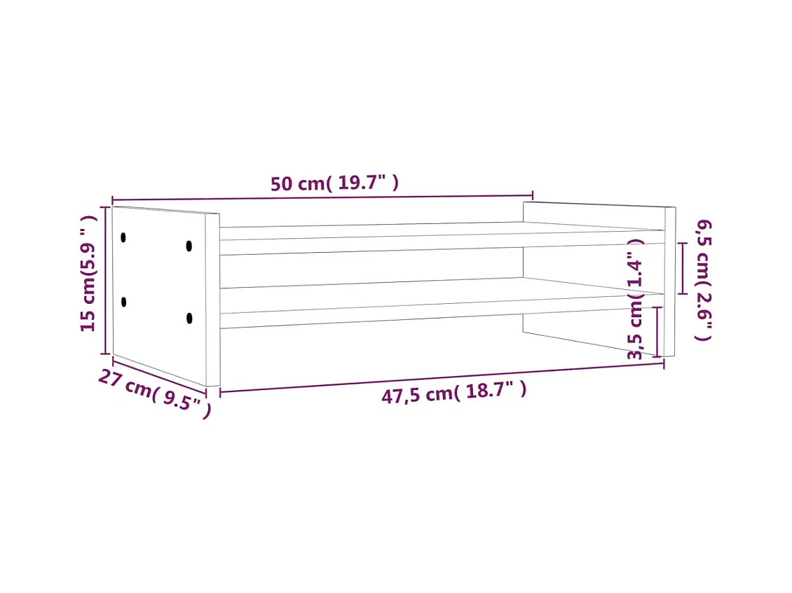 Suporte para monitor Branco 50x27x15 cm Madeira maciça de pinho