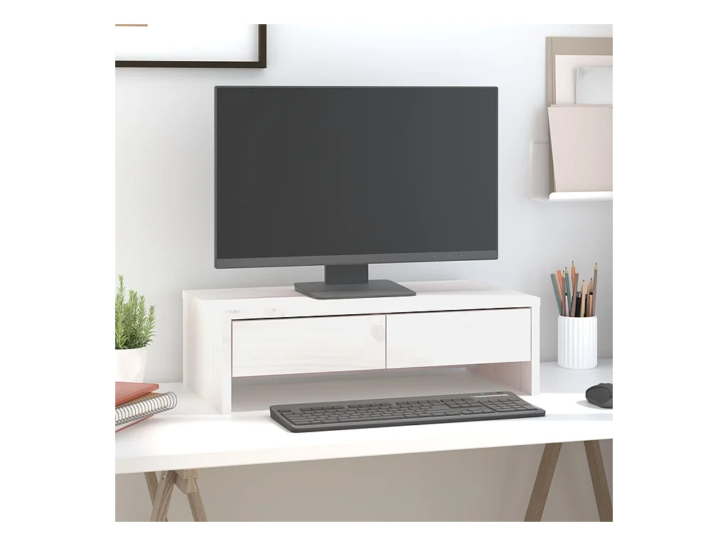 Suporte para monitor Branco 100x27x15 cm Madeira maciça de pinho