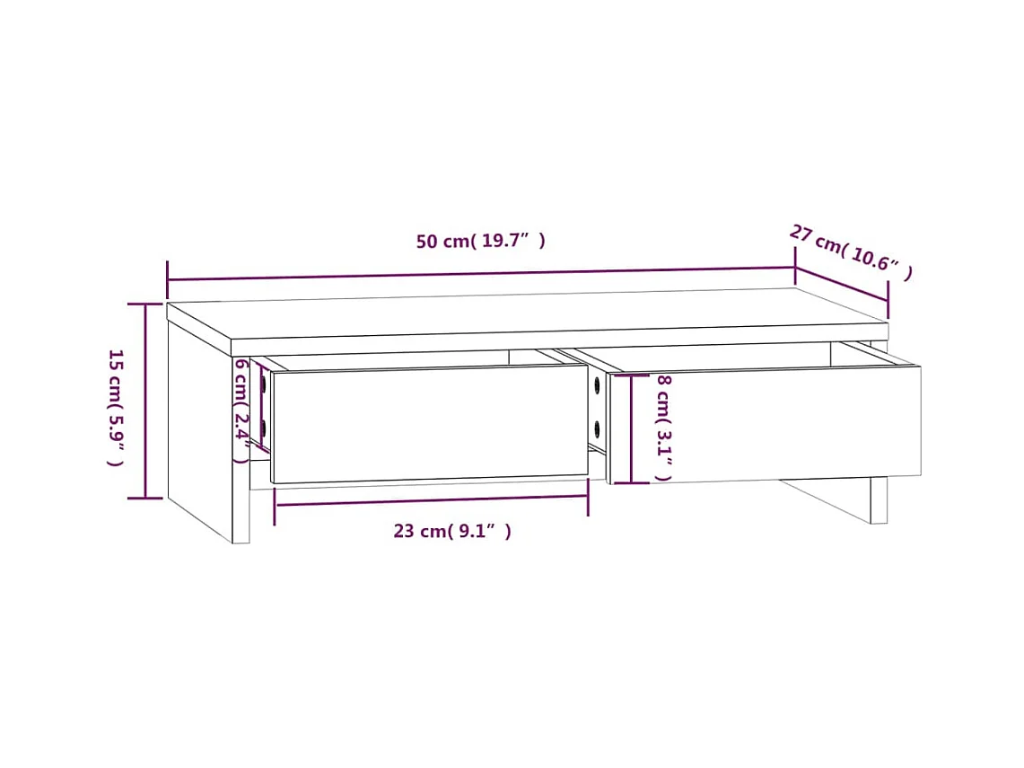 Suporte para monitor Branco 50x27x10 cm Madeira maciça de pinho