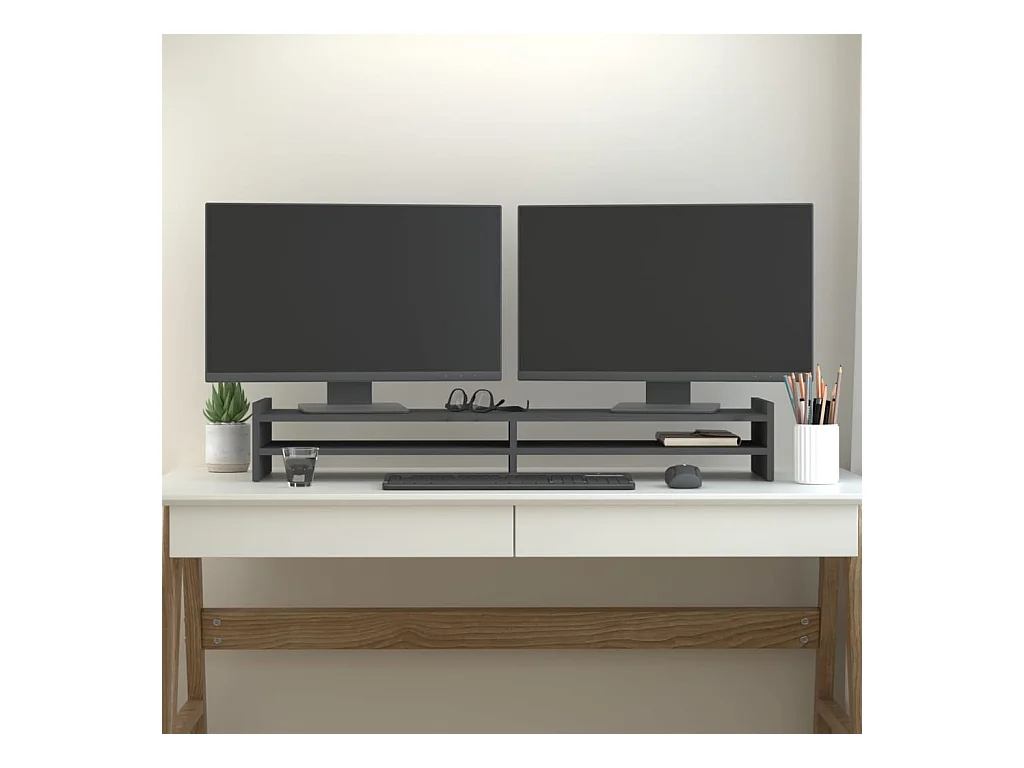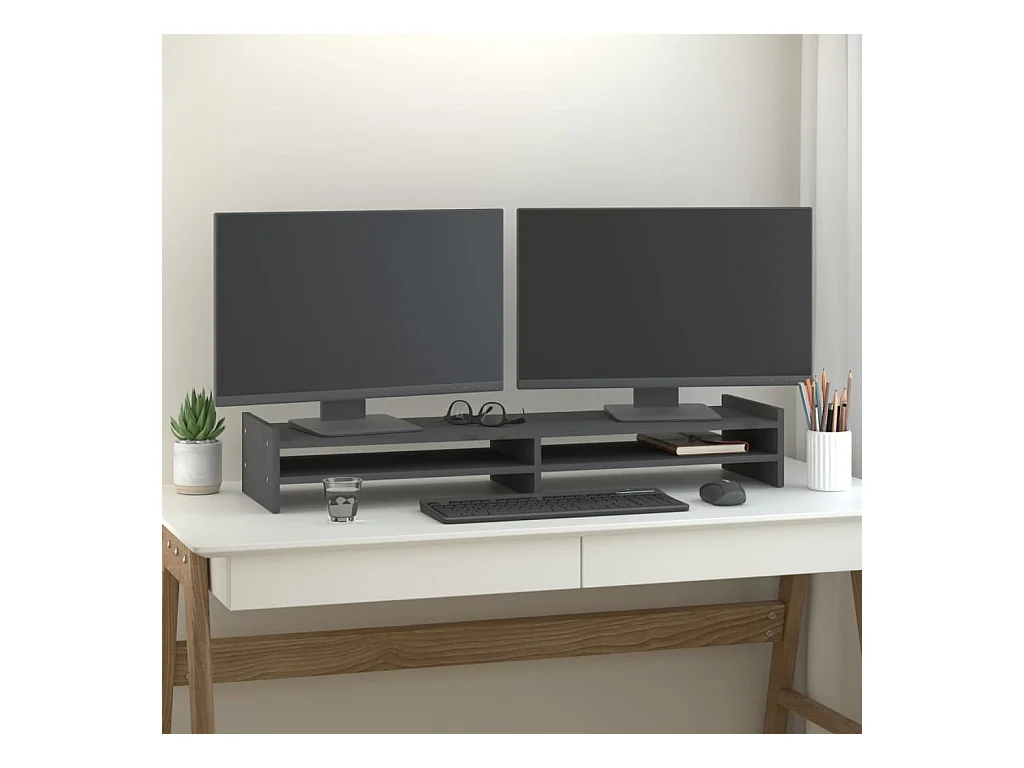 Suporte para monitor Cinza 100x27x15 cm Madeira maciça de pinho