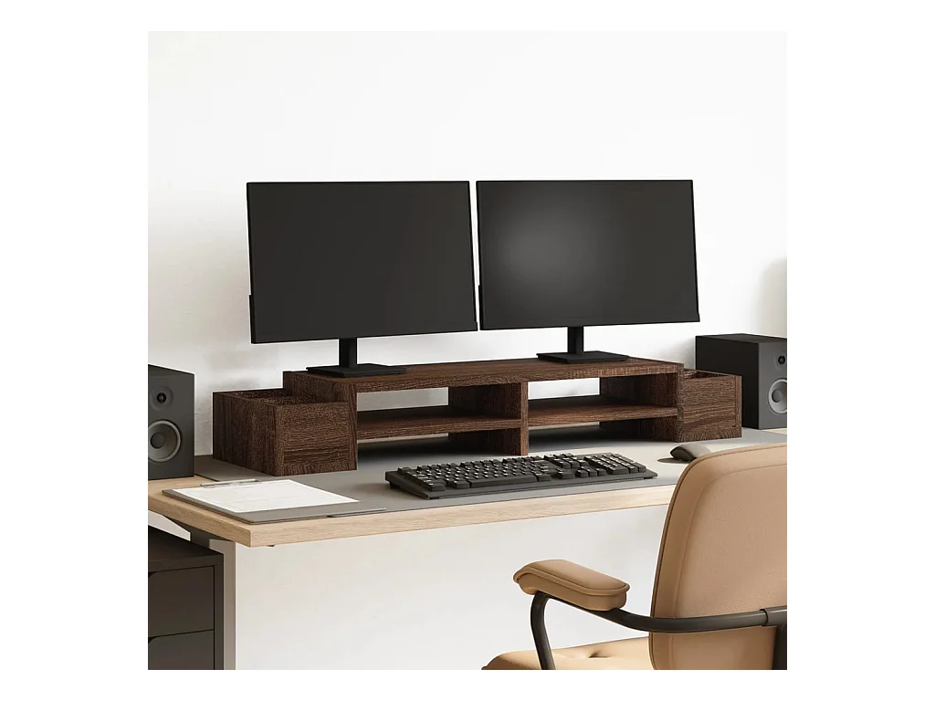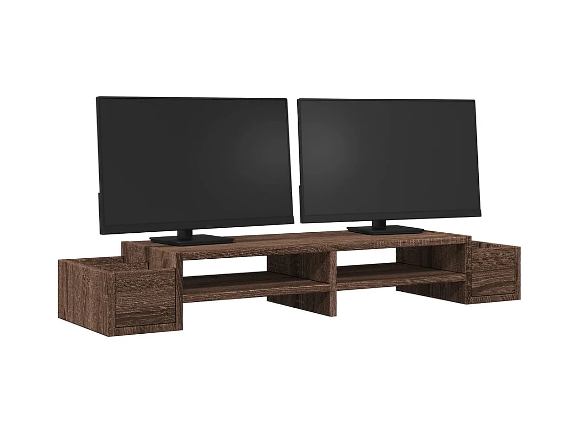 Suporte para monitor com armazenamento em madeira de carvalho marrom
