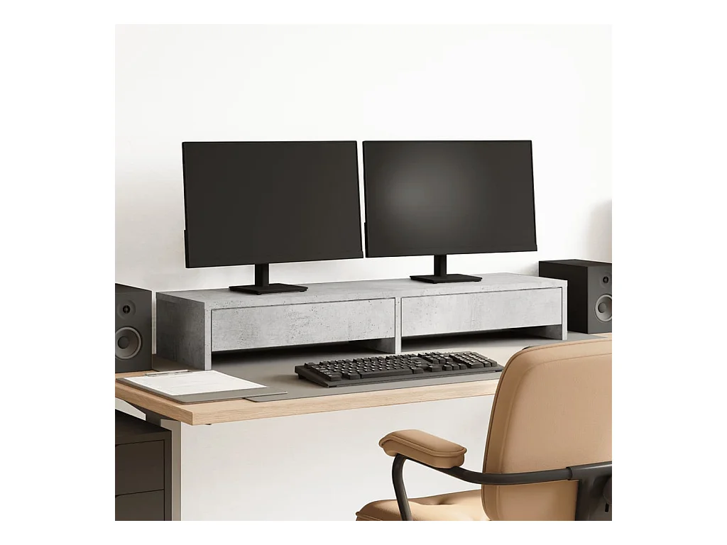 Suporte para monitor cinza concreto 100x27x10 cm madeira projetada