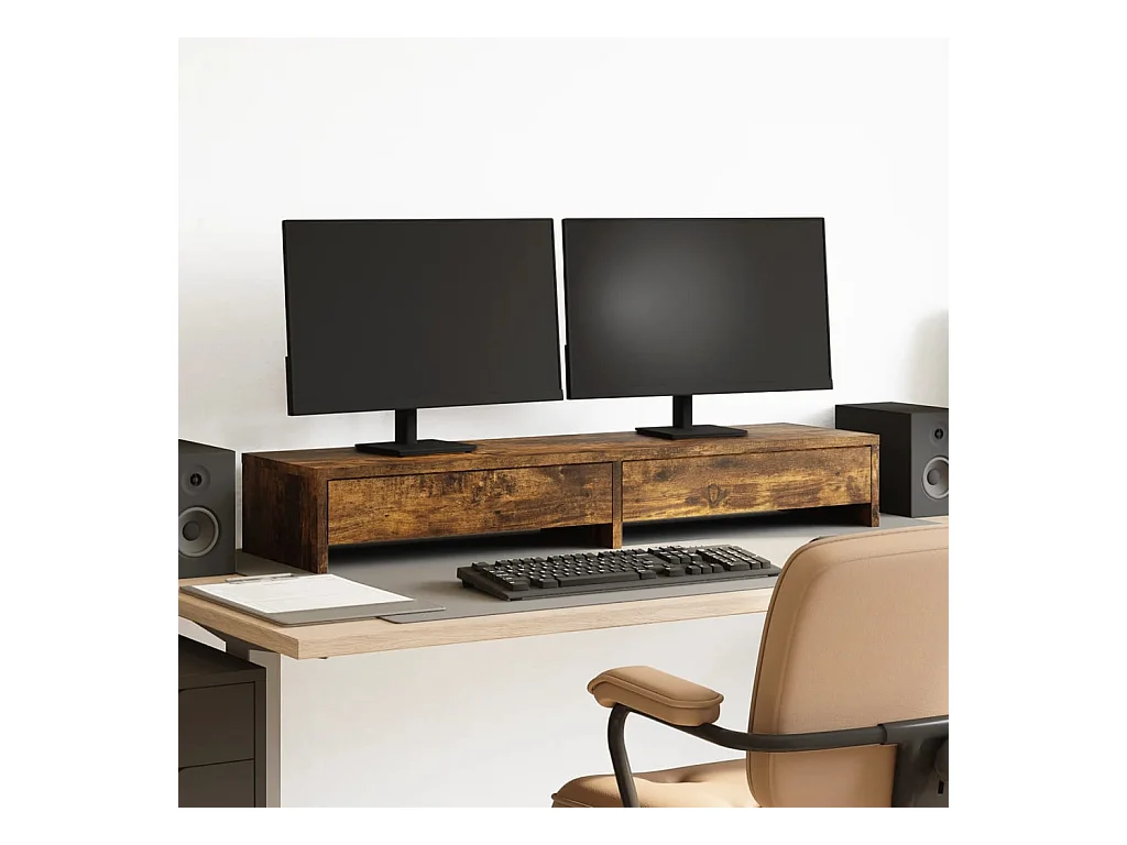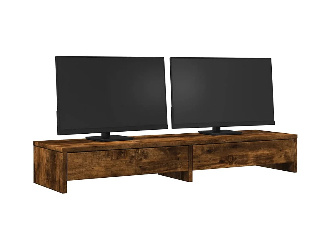 Suporte para monitor com gavetas em madeira de carvalho fumado