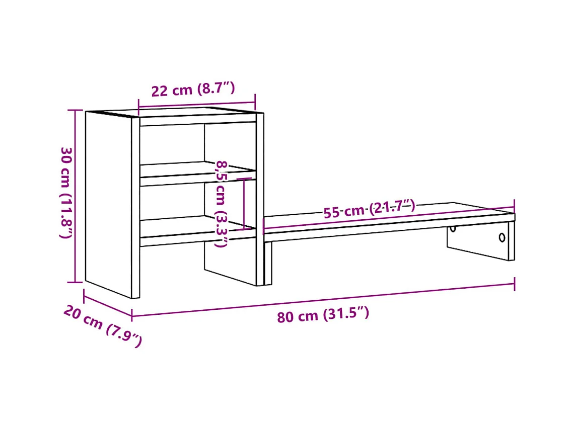 Suporte para monitor com armazenamento em madeira de carvalho marrom