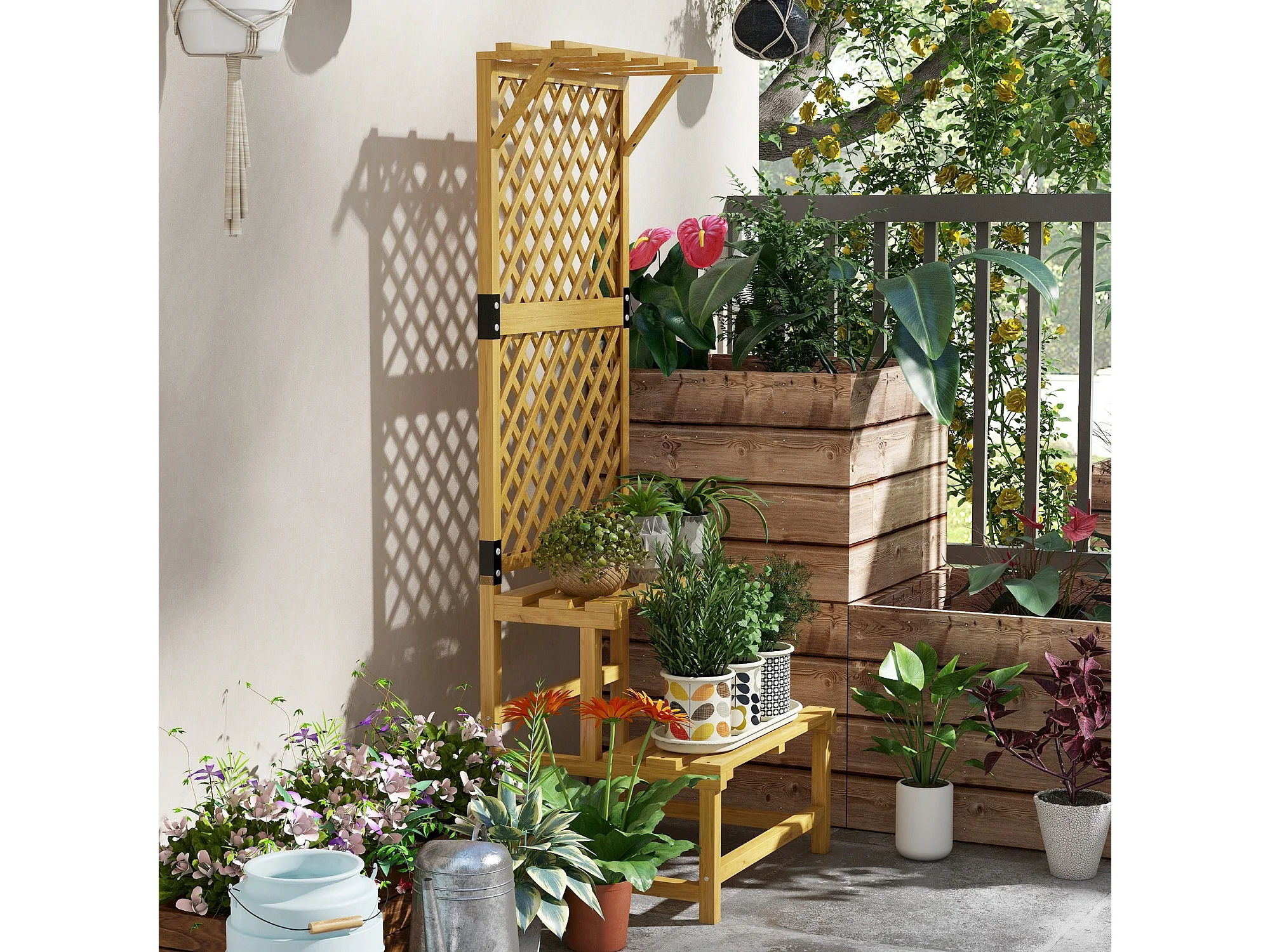 Suporte para Plantas em Madeira com Treliça Dupla para Jardim e Varanda - 60x50x166 cm