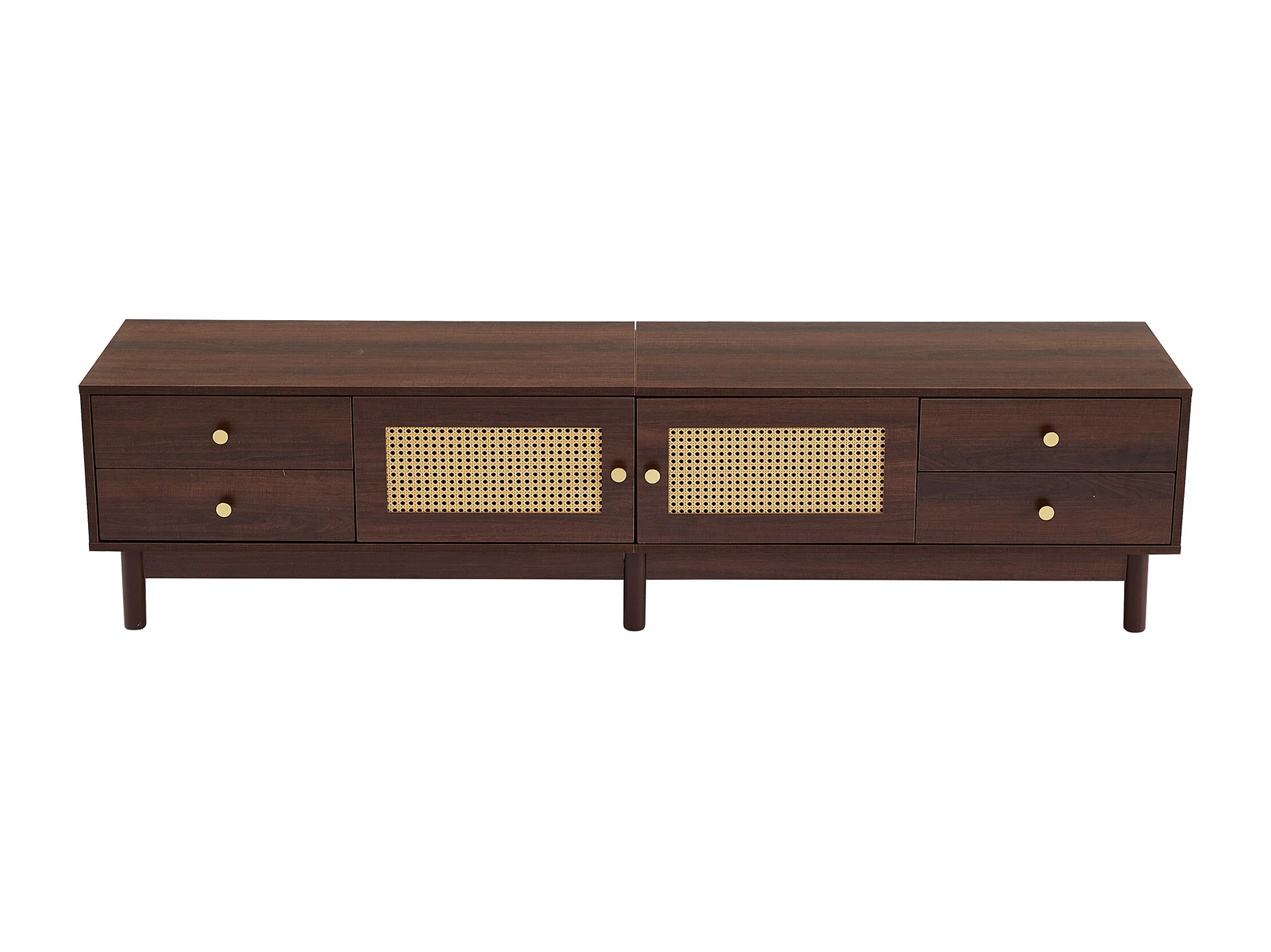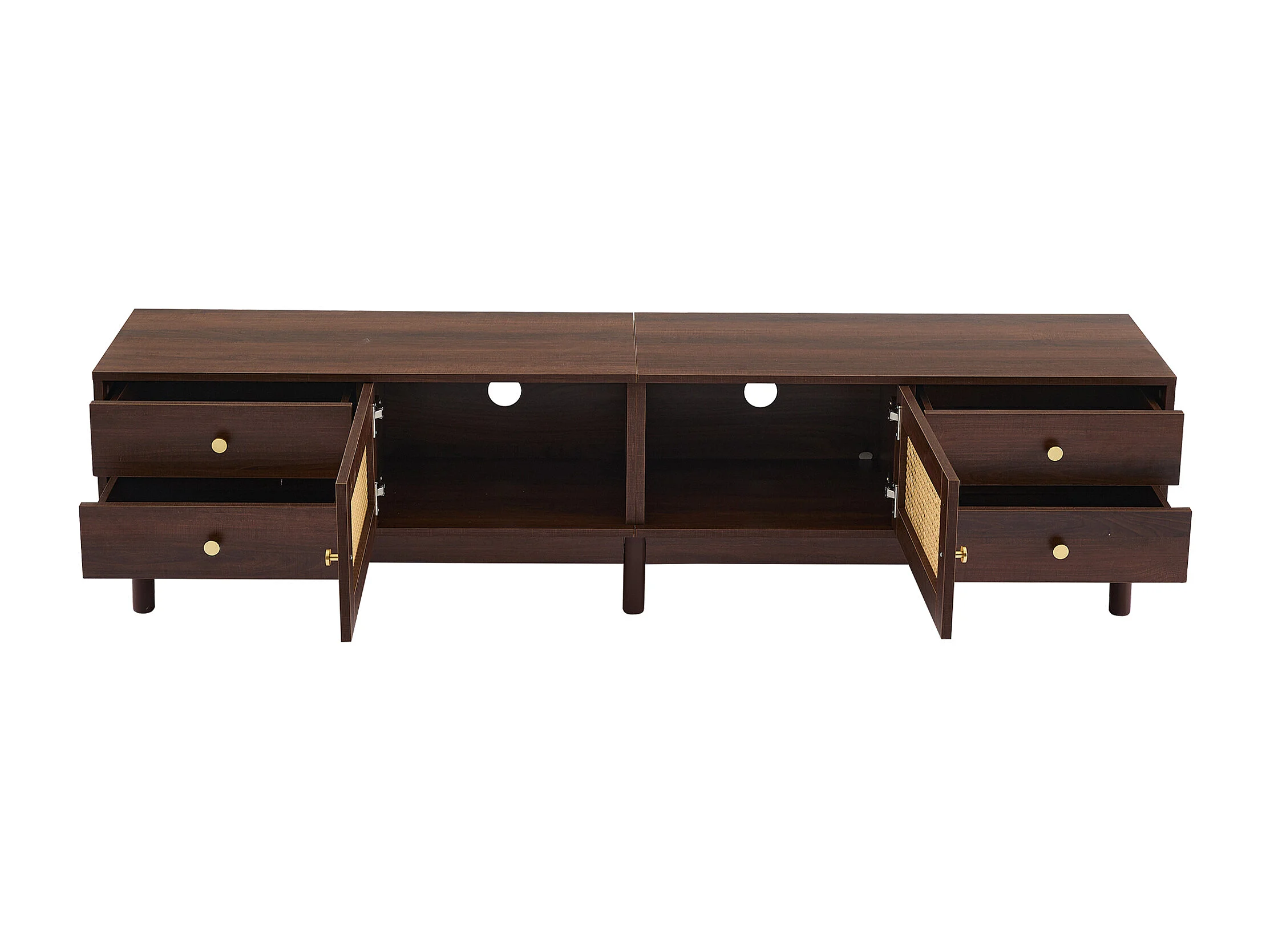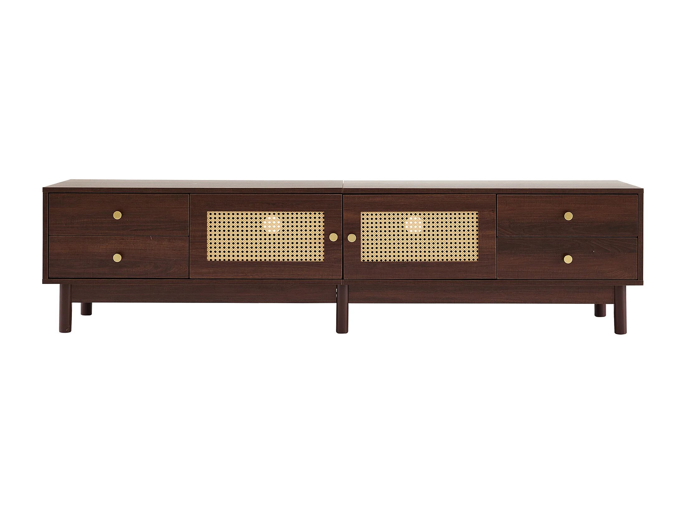 Suporte para TV com 2 portas e 4 gavetas, gestão de cabos, castanho
