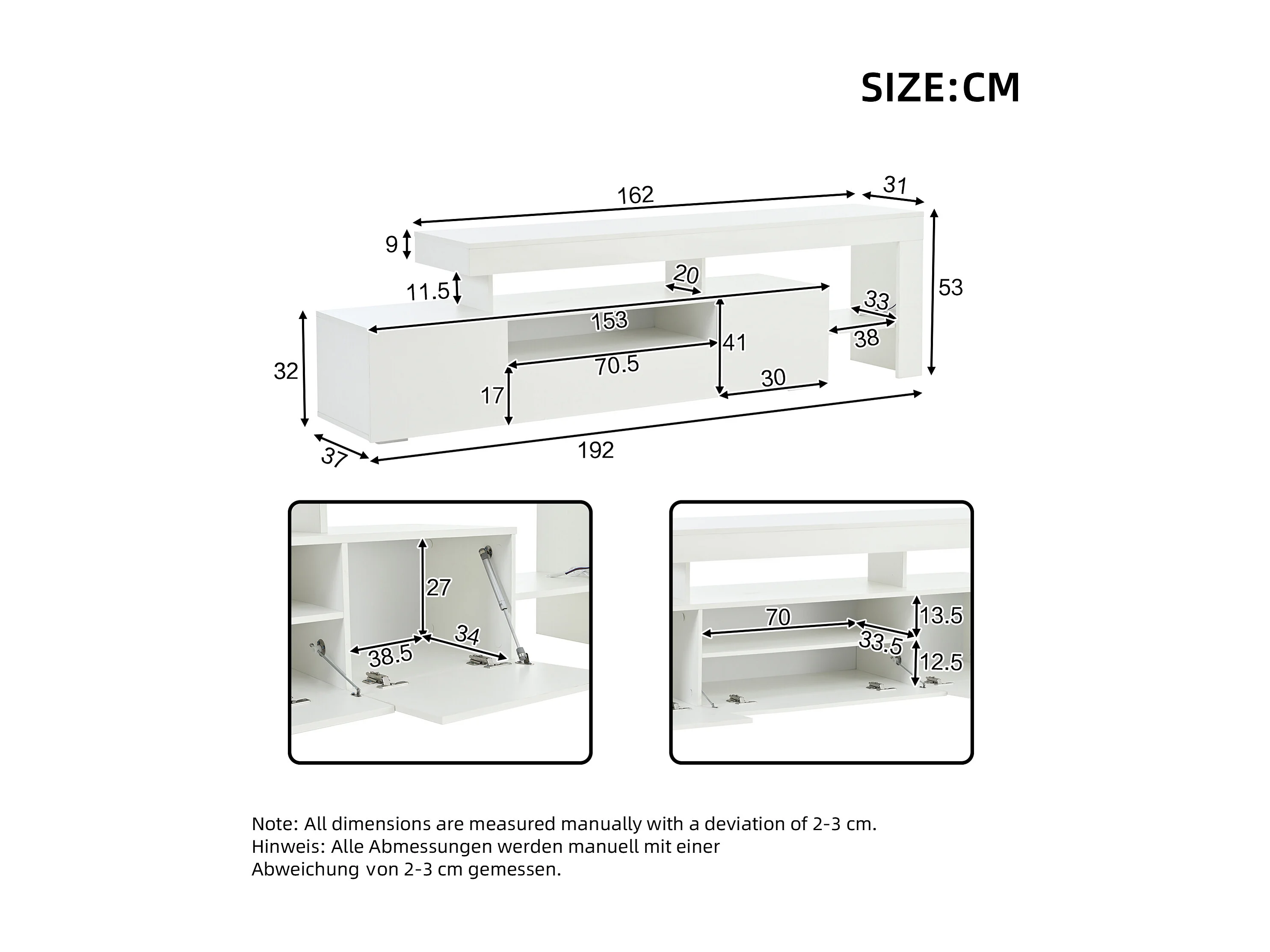 Suporte para TV com iluminação LED e 3 portas - acabamento brilhante - Branco 192 x 37 x 53 cm