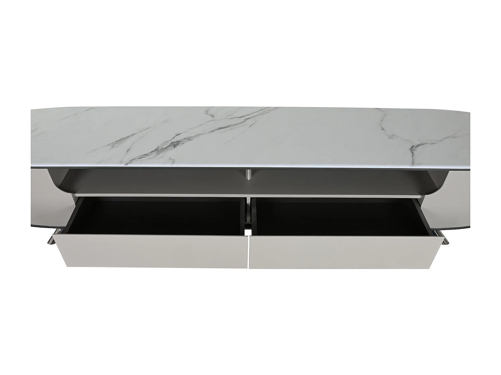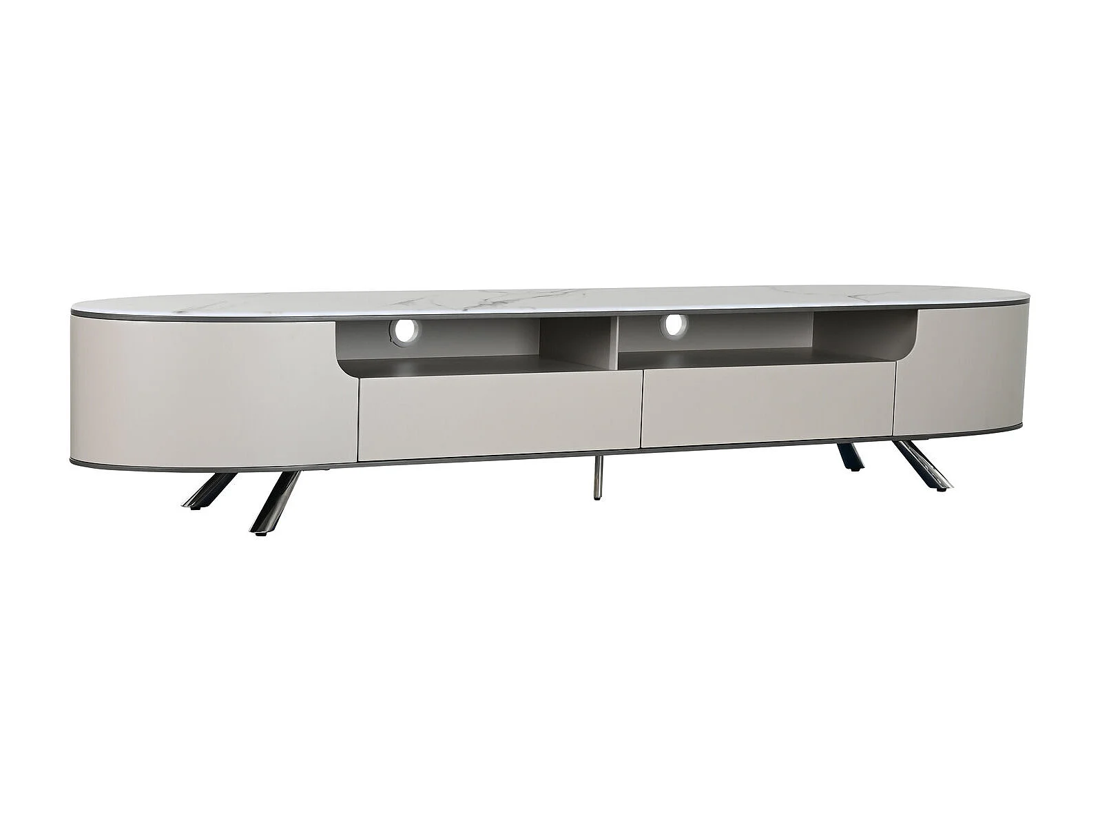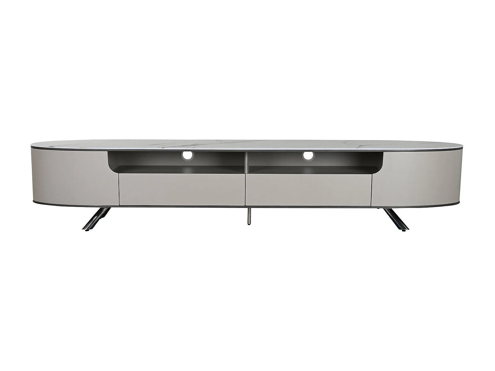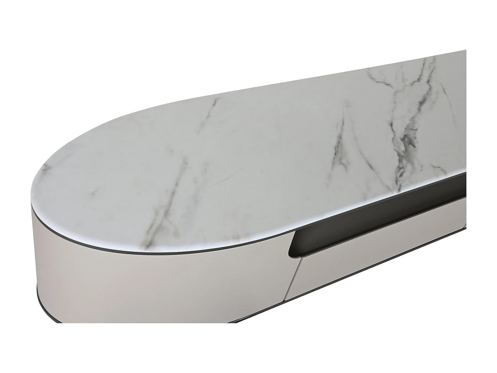 Suporte para TV em aço com detalhes em mármore, 220 x 42 x 41,5 cm, bege.