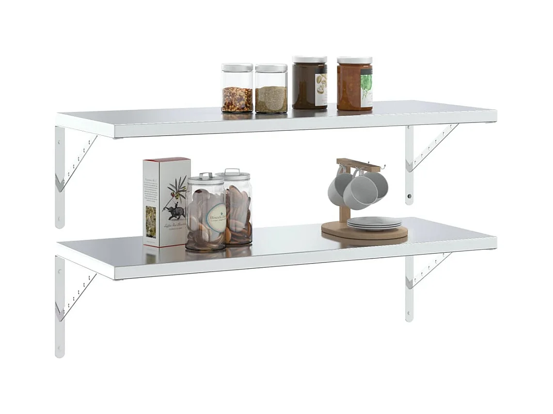 Prateleiras de parede 2 pcs 75x40 cm aço inoxidável prateado