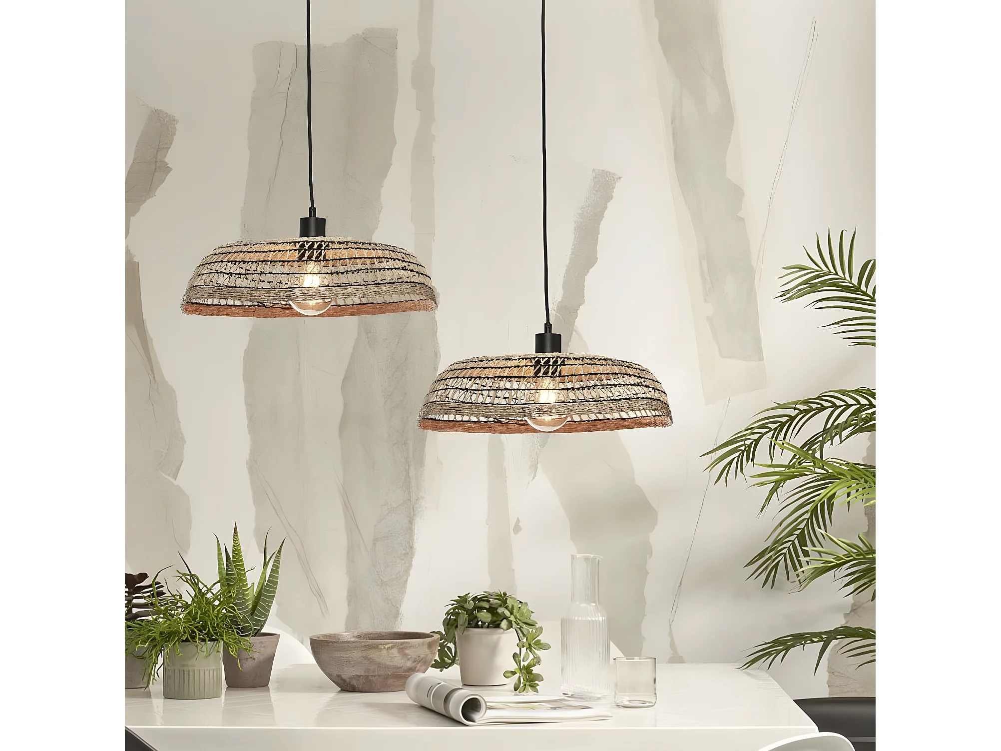Suspensão de junco do mar tecida à mão Pantanal Good & Mojo - Preto
