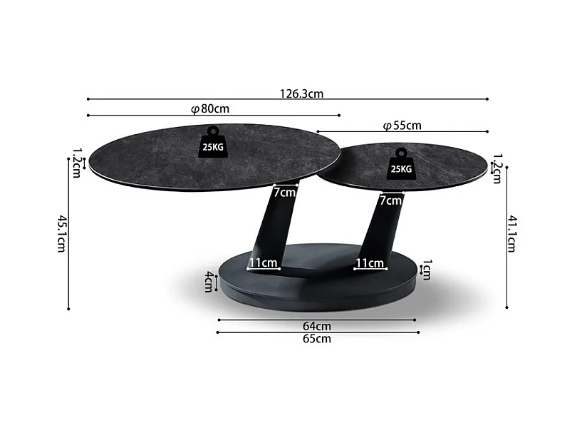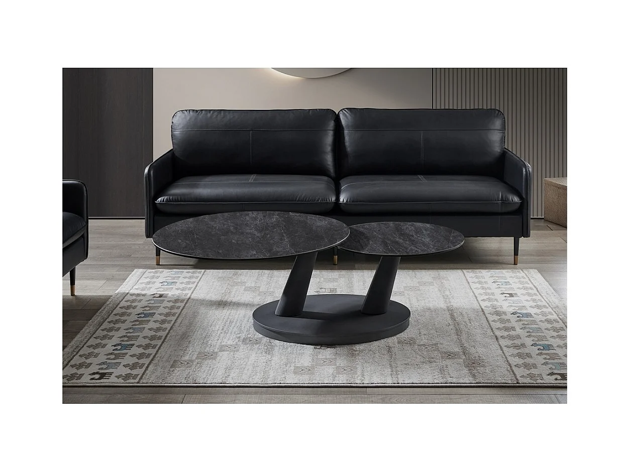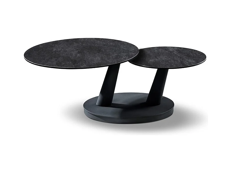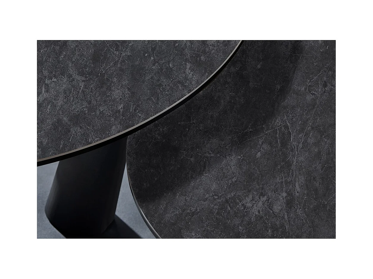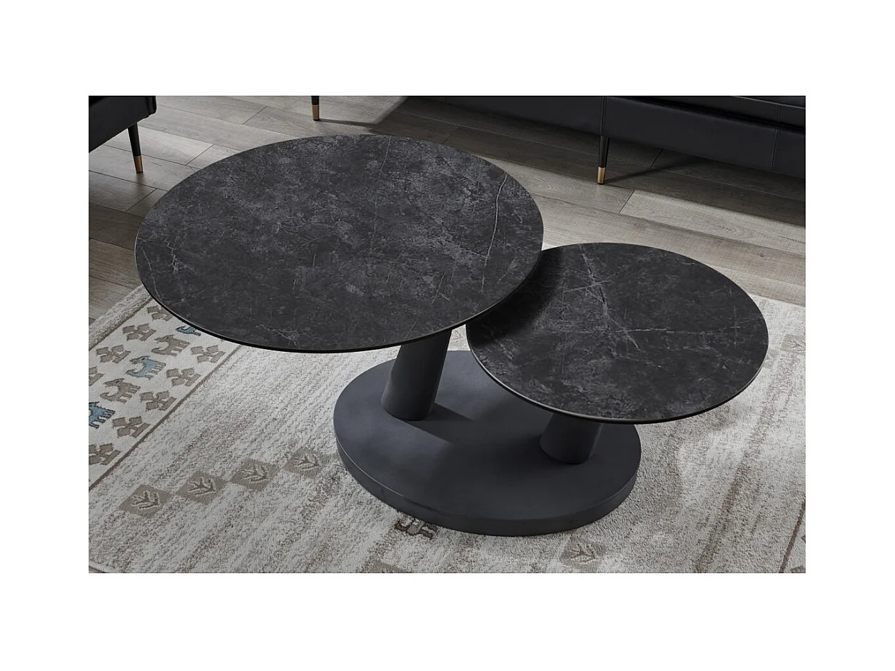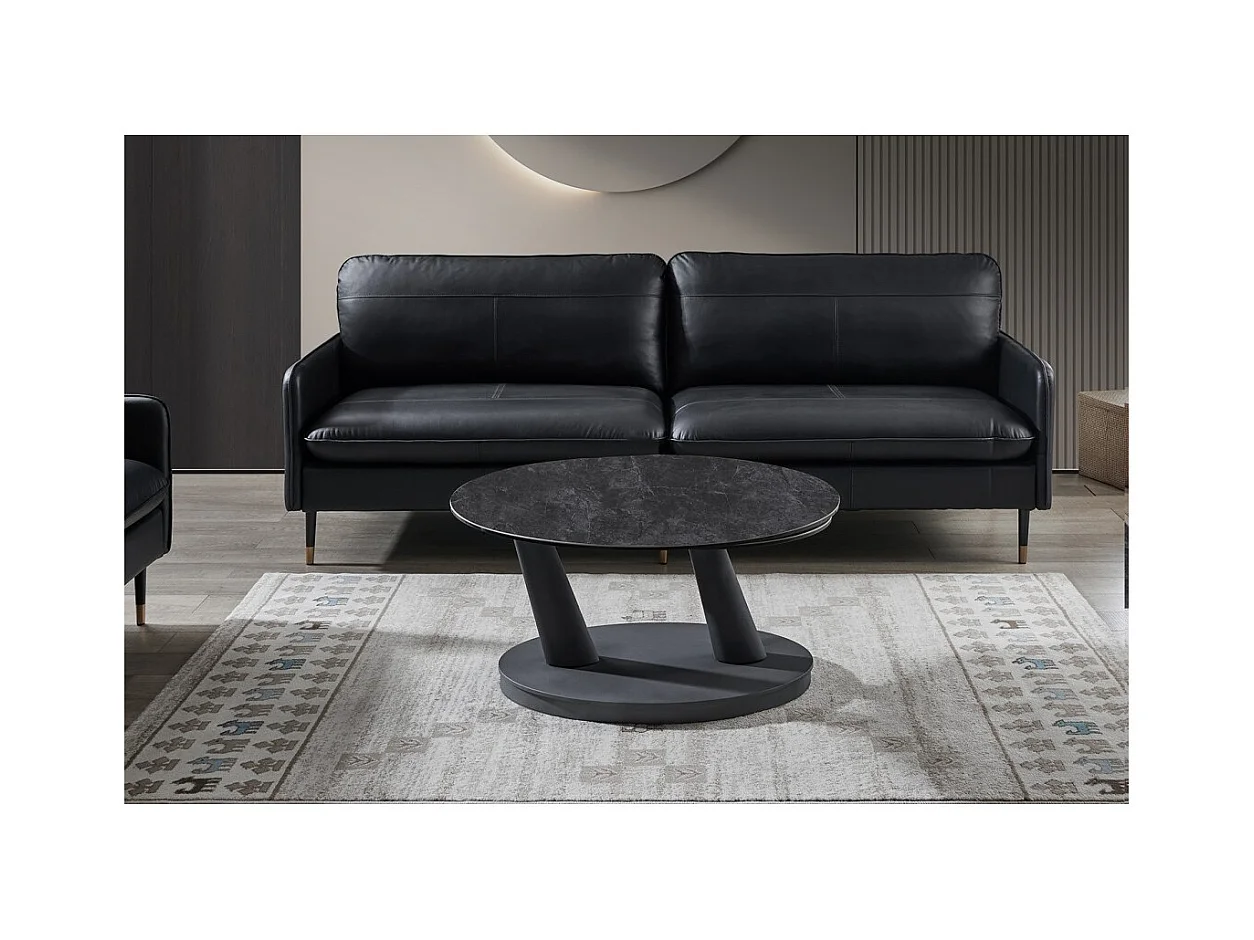 Table baixa VIRELLO – Mesa de centro redonda Ø80 cm – Pedra natural cinza escura & metal – Design contemporâneo e robusto