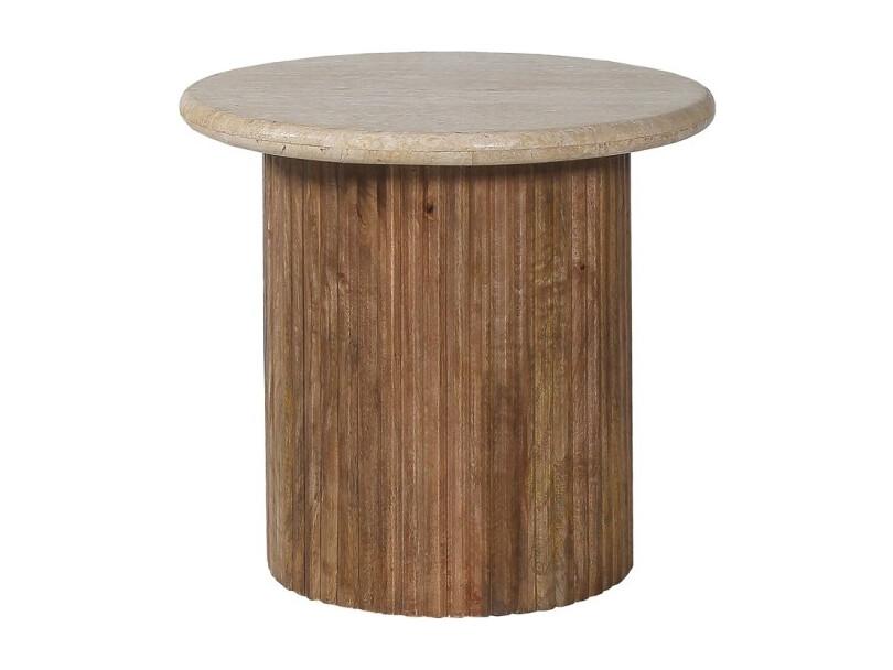 Table de centro MAELORA – Mesa de centro redonda Ø50 cm – Madeira de mangueira & travertino – Design natural e elegante