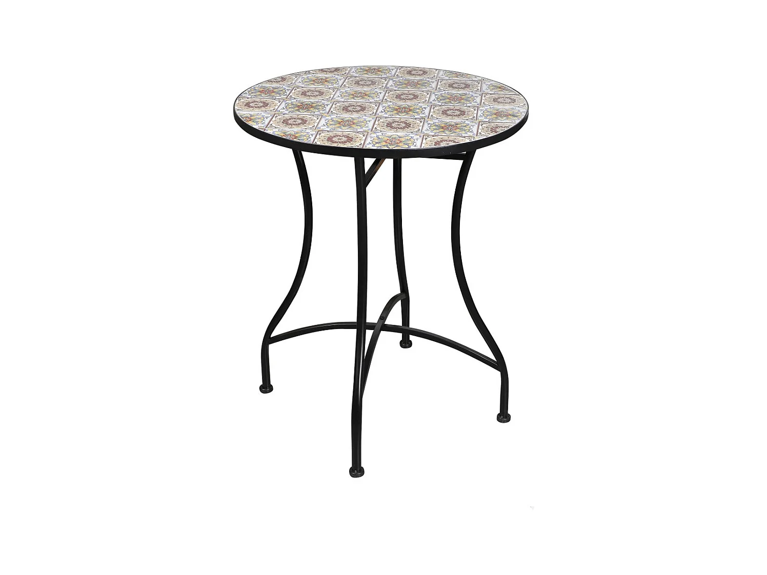 Mesa de jardim redonda bistrô coleção PORTO – Mosaico decorativo – Metal preto – Ø60xH71 cm