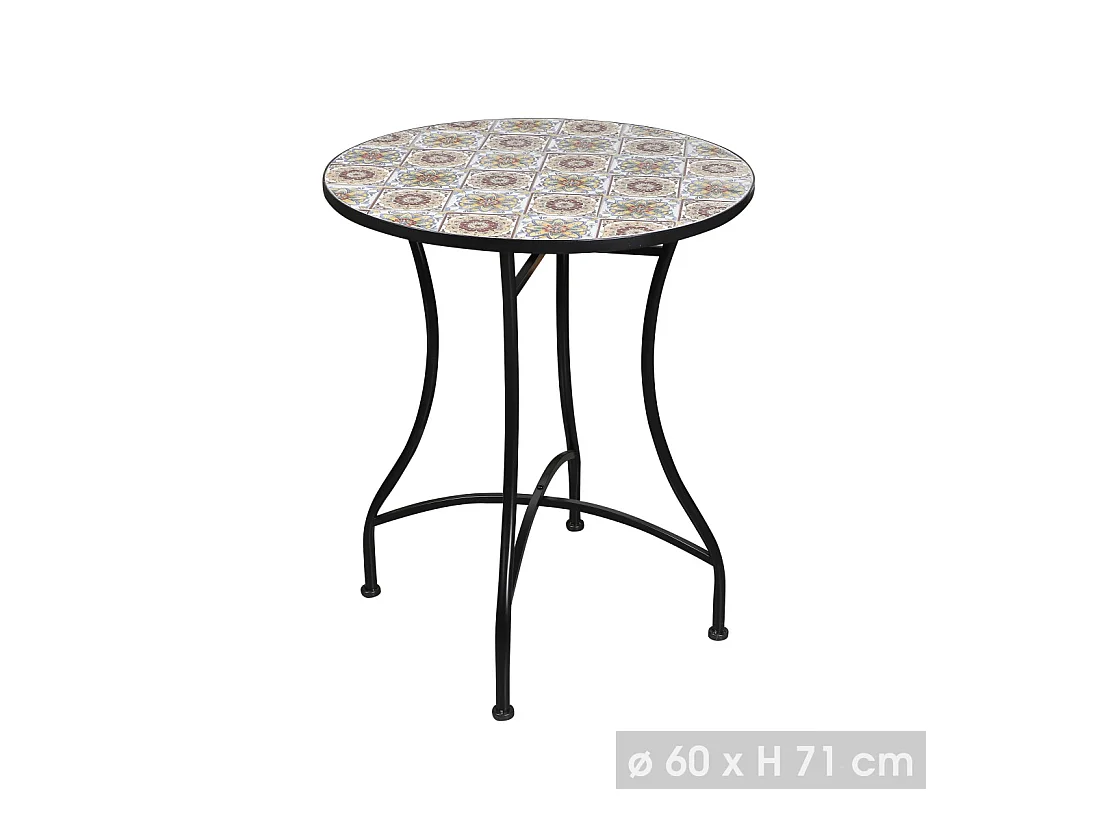 Table de jardin ronde bistrot collection PORTO – Mosaïque décorative – Métal noir – Ø60xH71 cm