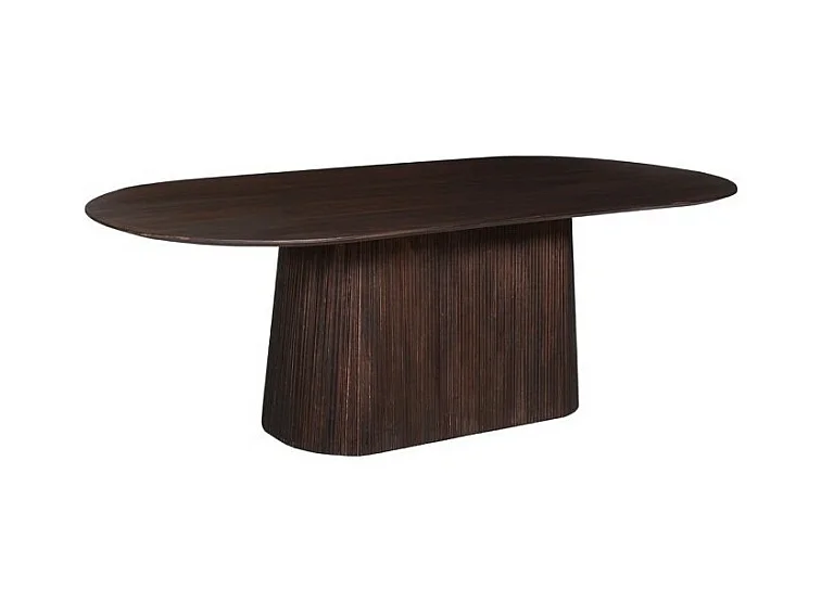 Table ovale en bois massif pour 6 couverts collection MITCHEL en bois exotique de manguier brun foncé 200x100cm
