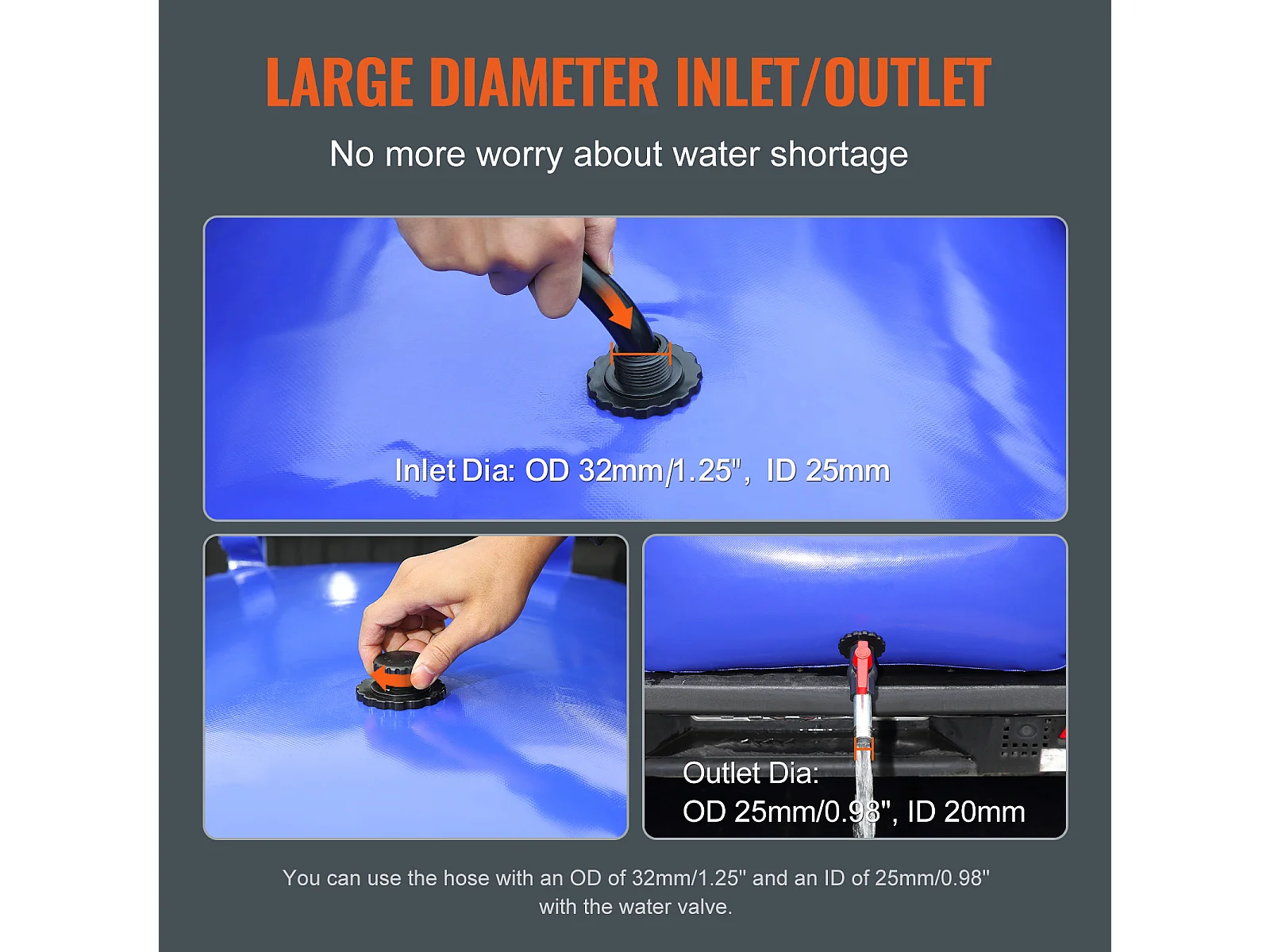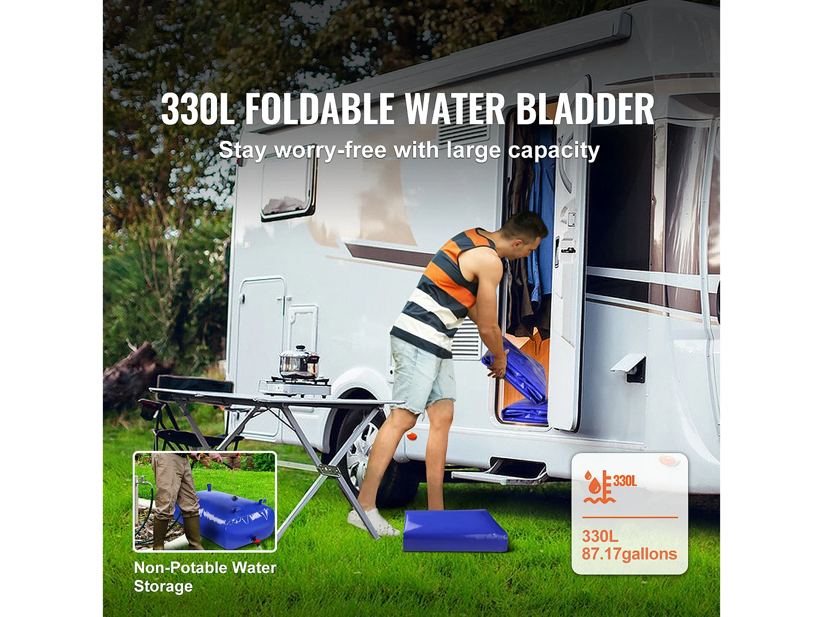 Tanque de Água Portátil SucceBuy de 330L, Dobrável em PVC 1000D, Tanque de Água para Caravana, Grande Capacidade, Portátil, Prevenção de Incêndios, Camping