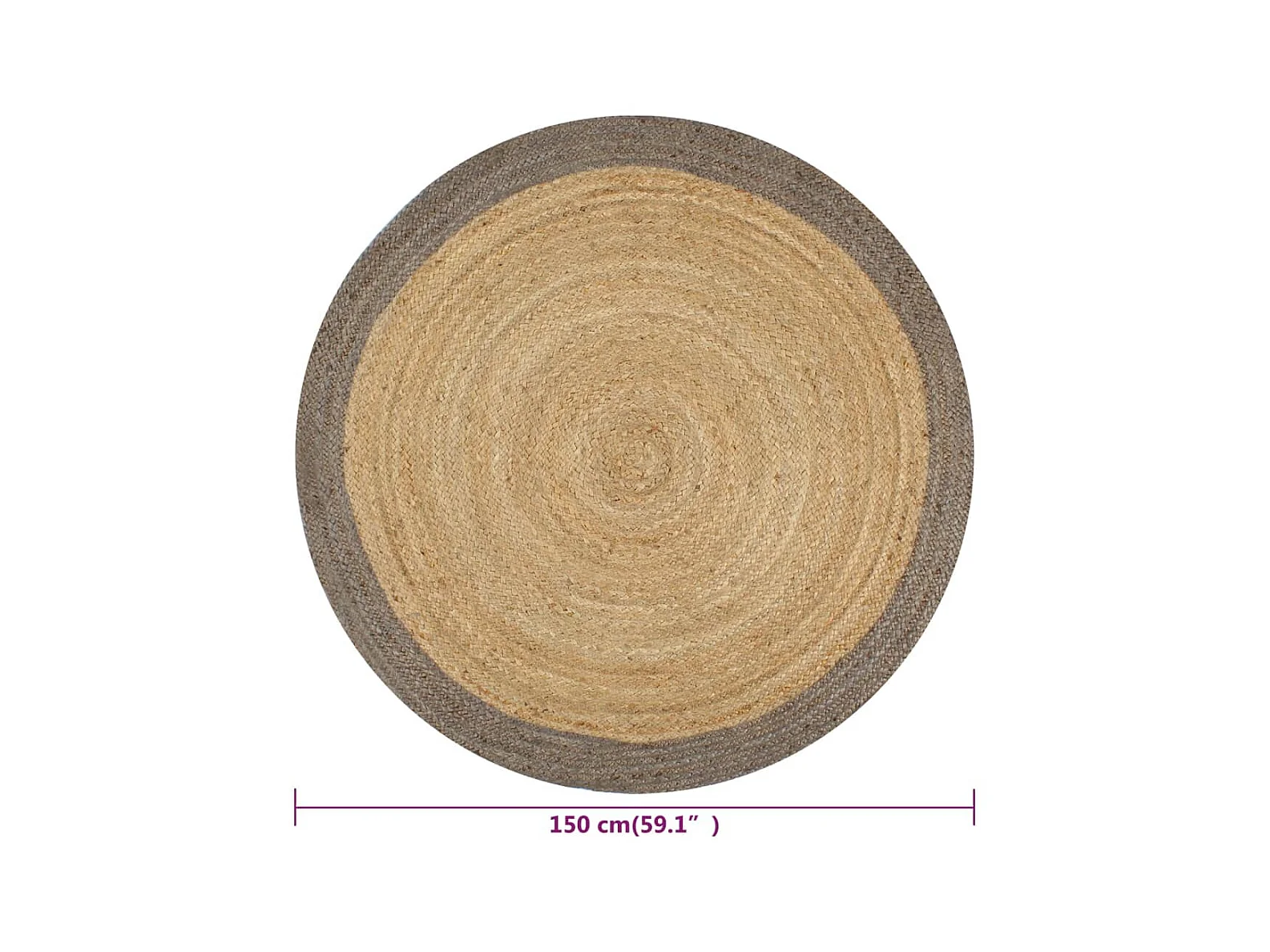 Tapete artesanal de juta com borda cinza 150 cm