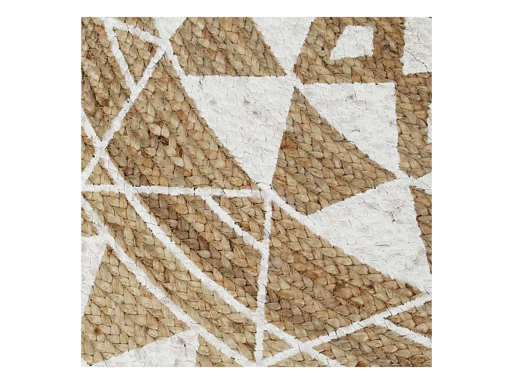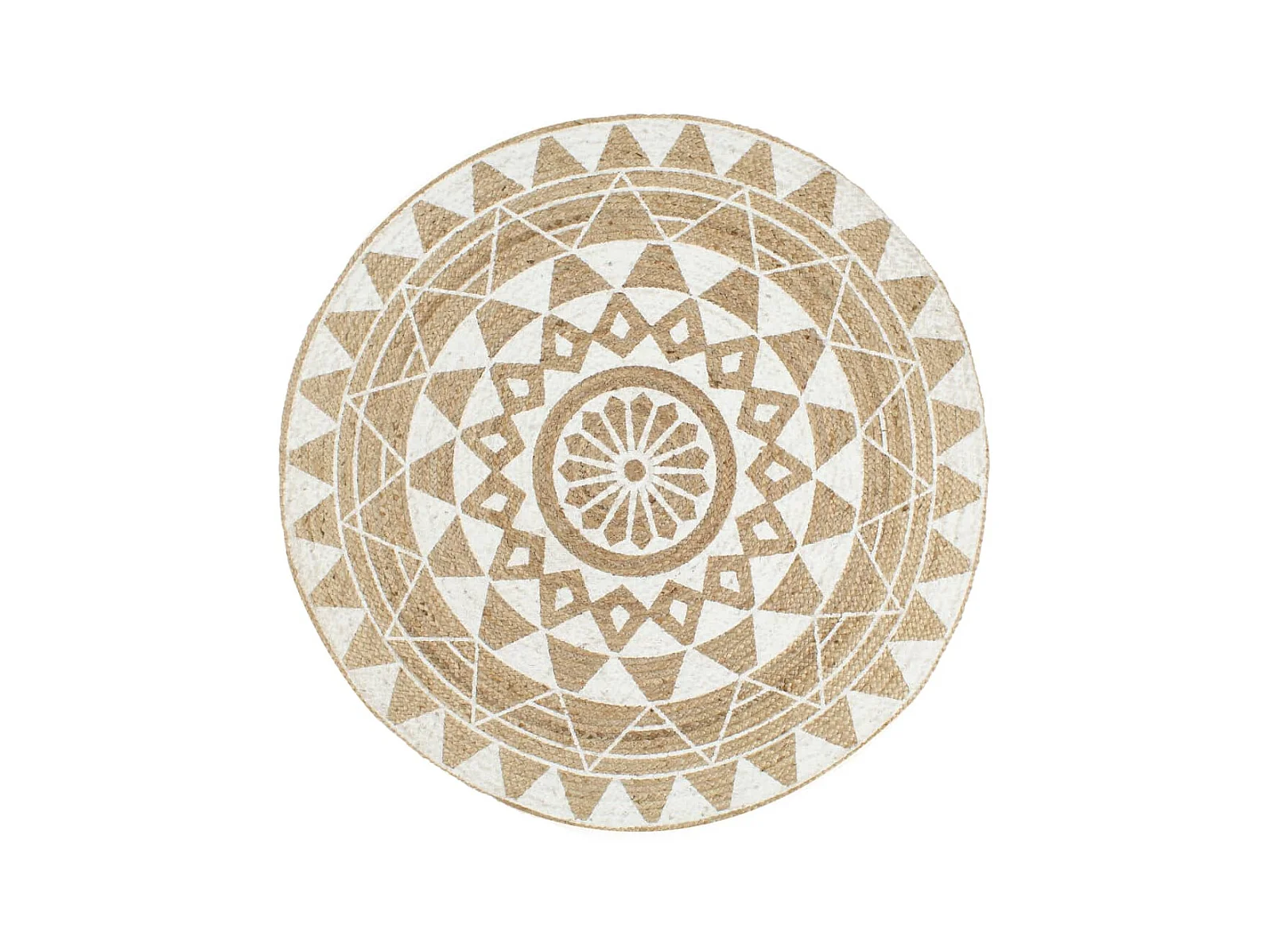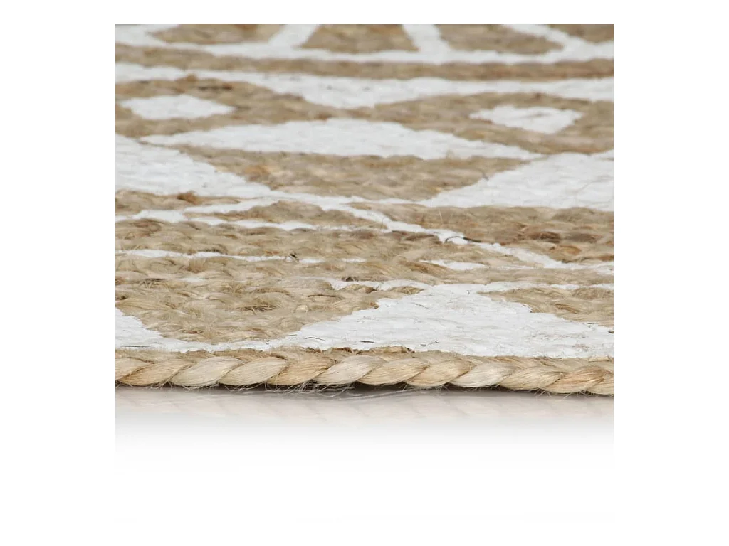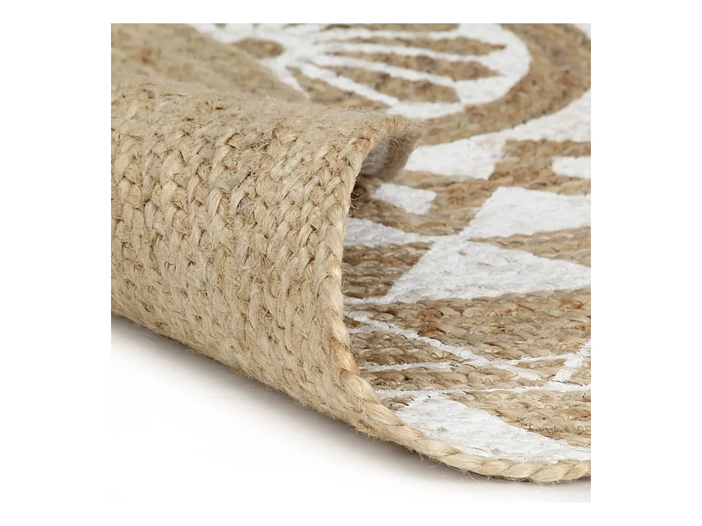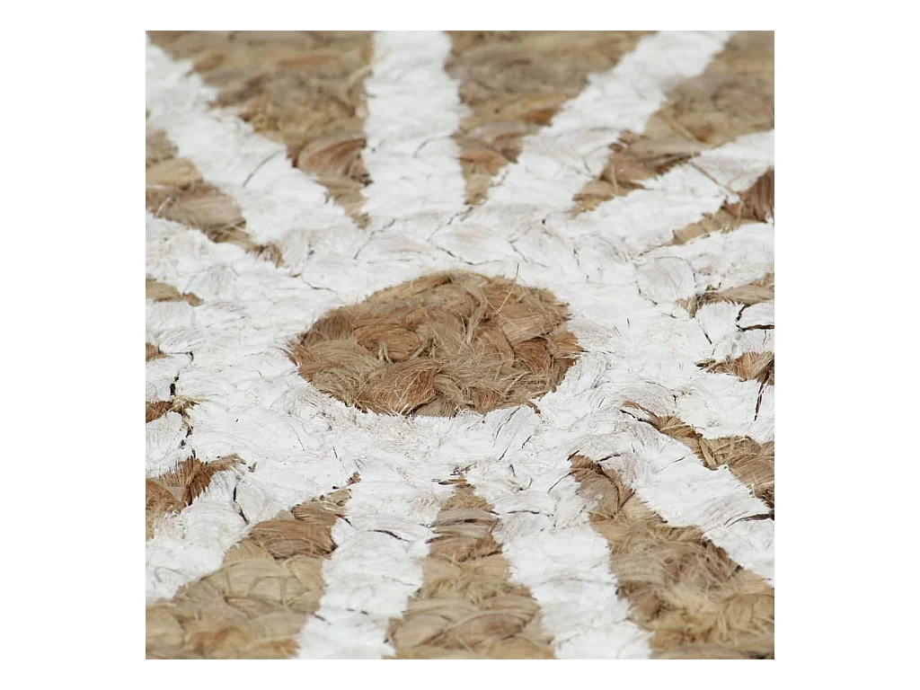 Tapete feito à mão de juta com desenho em espiral branco 120 cm