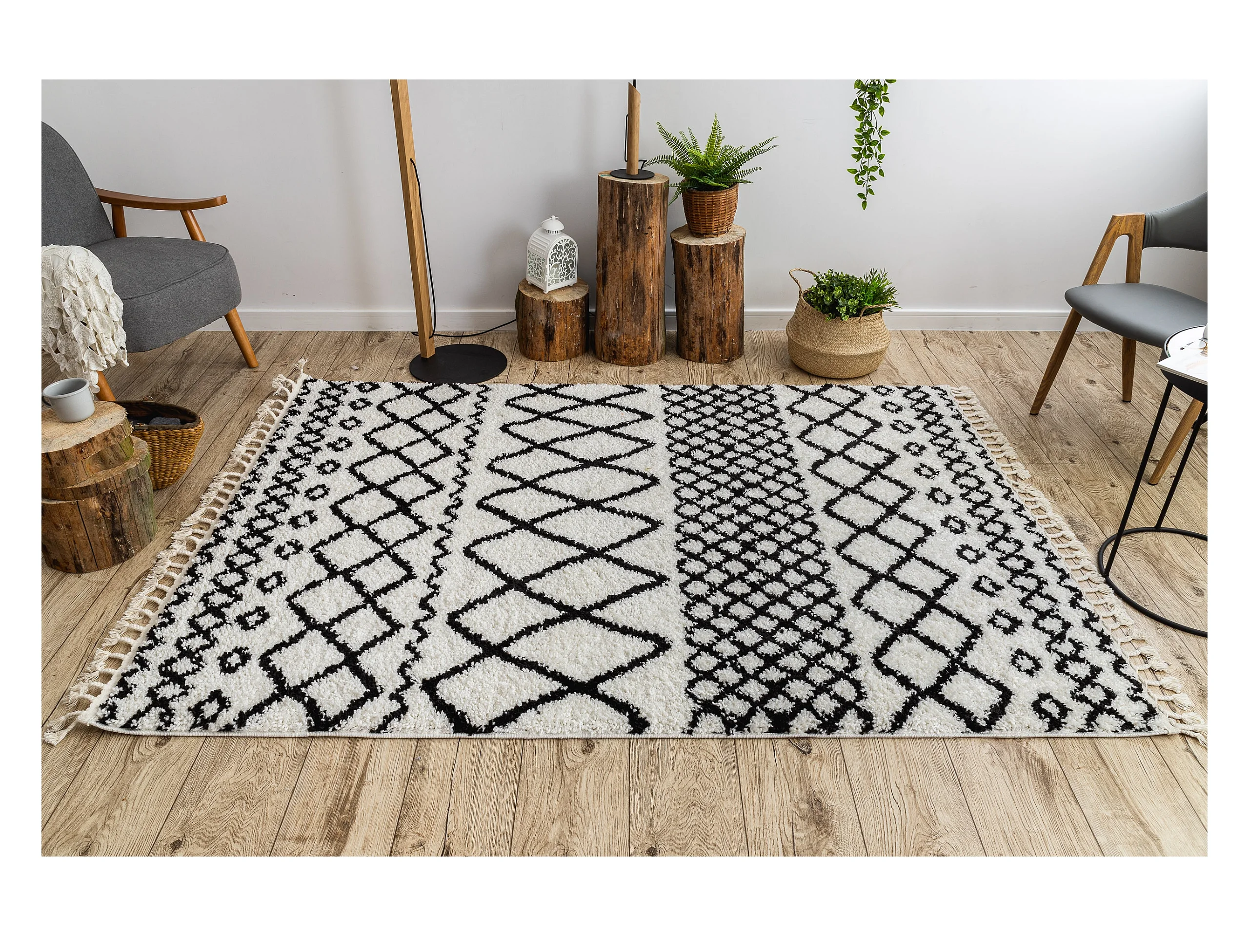 Tapete BERBER SAFI N9040 branco/preto Franjas berbere marroquino shagg 160x220 cm