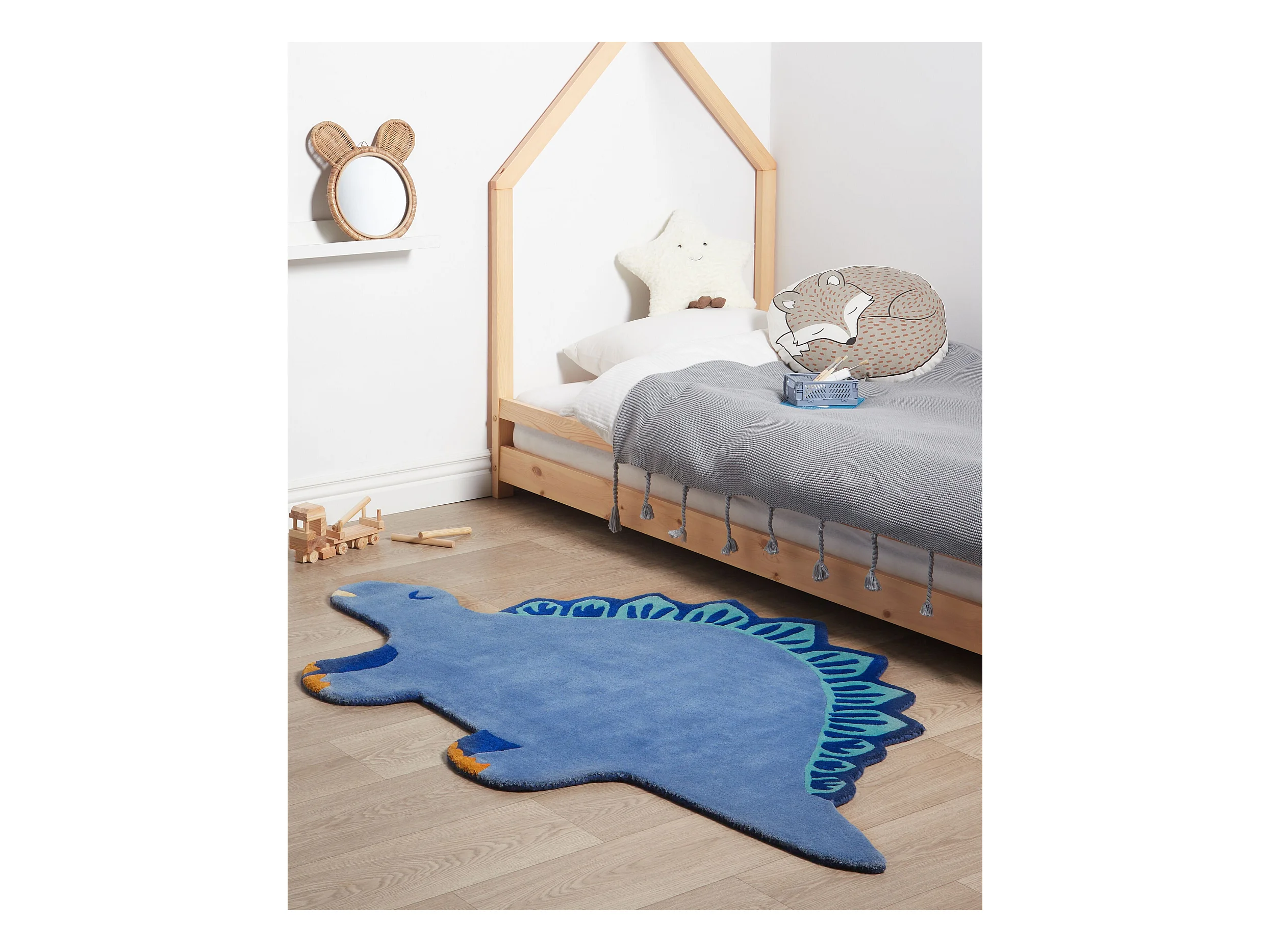 Tapete com forma de dinossauro em lã azul 100 x 160 cm DINO