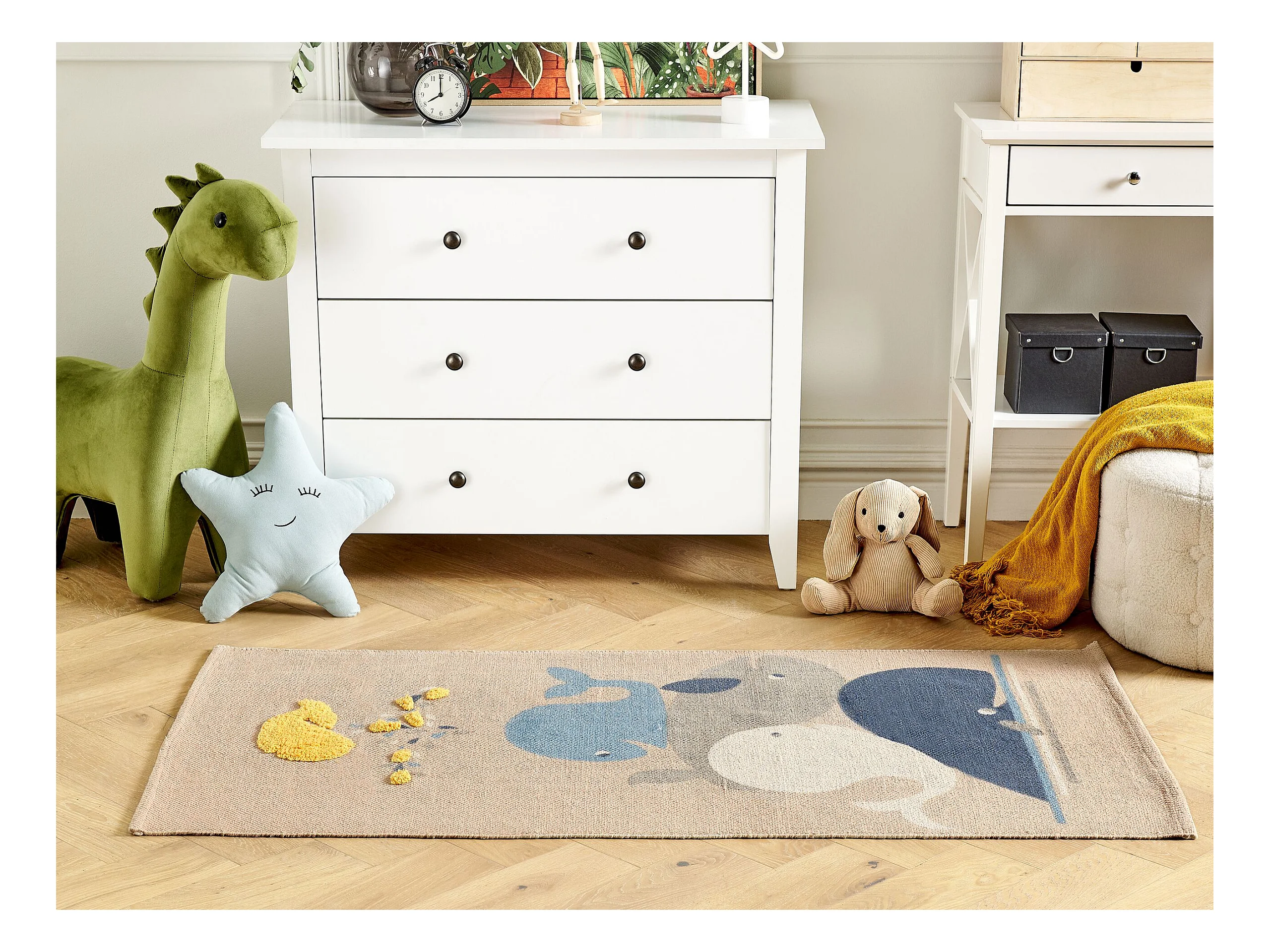 Tapete de algodão creme com motivo de de baleias 80 x 150 cm SEAI