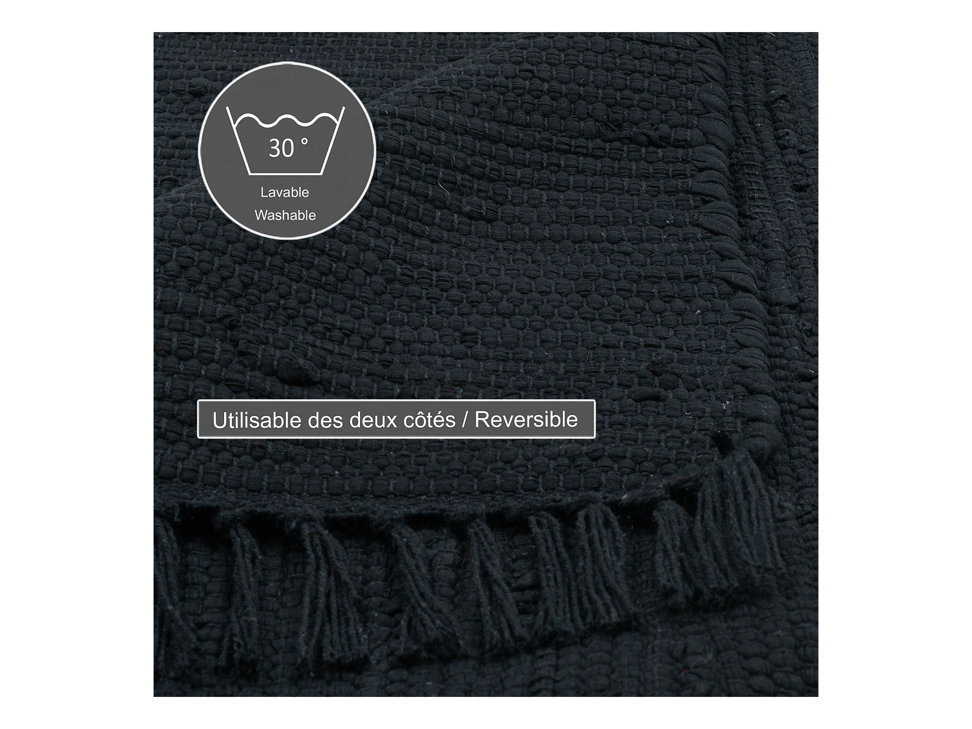 Tapete de algodão tecido à mão e reversível 90x160 cm preto Happy Cotton