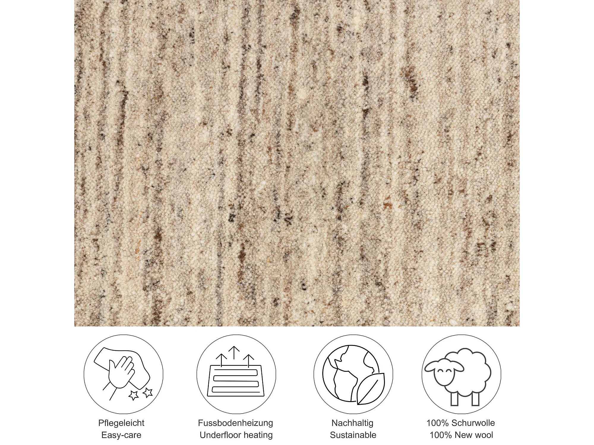 Tapete de lã UNI tecido à mão 250x350 cm bege natural Pure