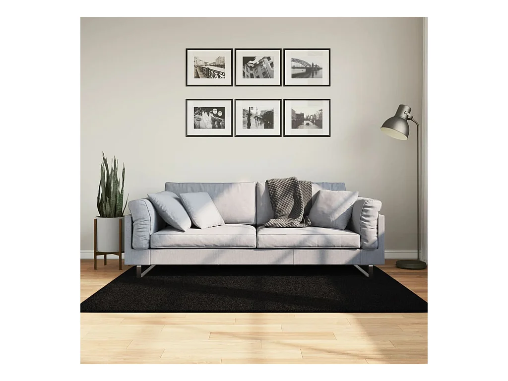 Tapete de pelo curto macio e lavável 120x170 cm preto